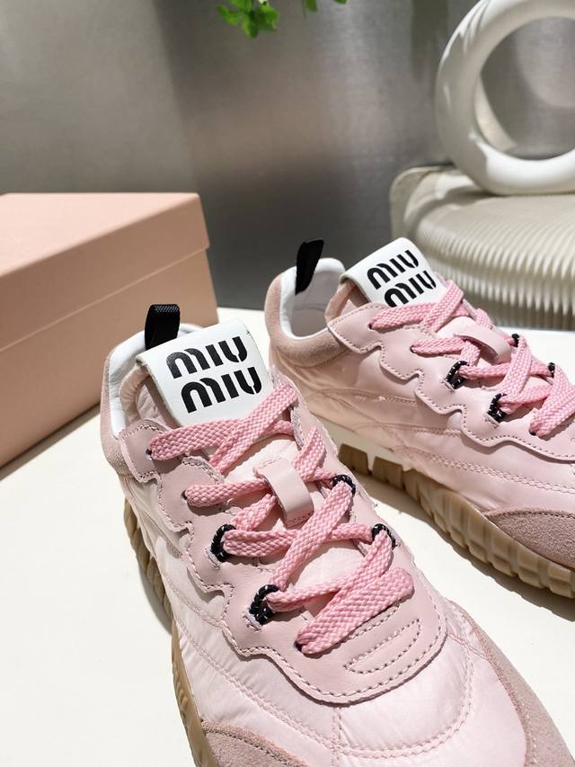 Factory direct Miu 2025 Forrest Gump casual sneakers, new spring/summer style, recently popular and bold design. The Miu style is incorporated into the simple lines of this thick-soled canvas sneaker, with a unique logo on the tongue and back, accented by a retro thick sole design. Bold, innovative, and avant-garde, comfortable and breathable, the color is also very versatile. Sizes 35-41, 40.41 available. Custom made.