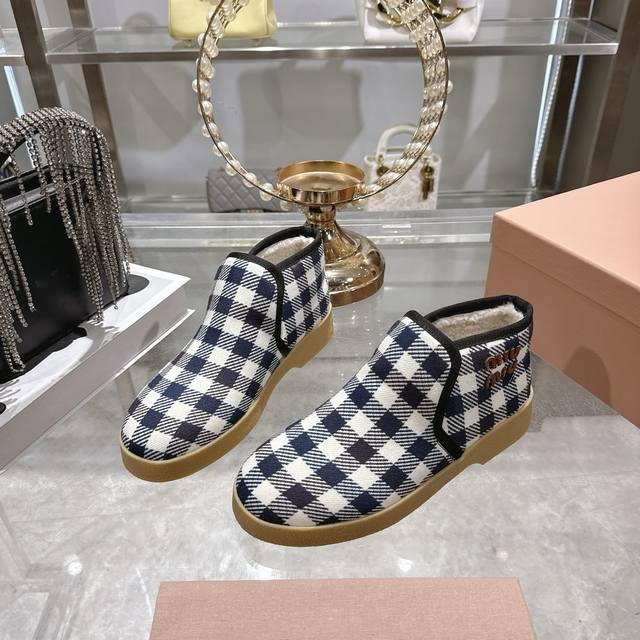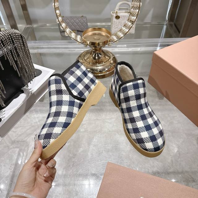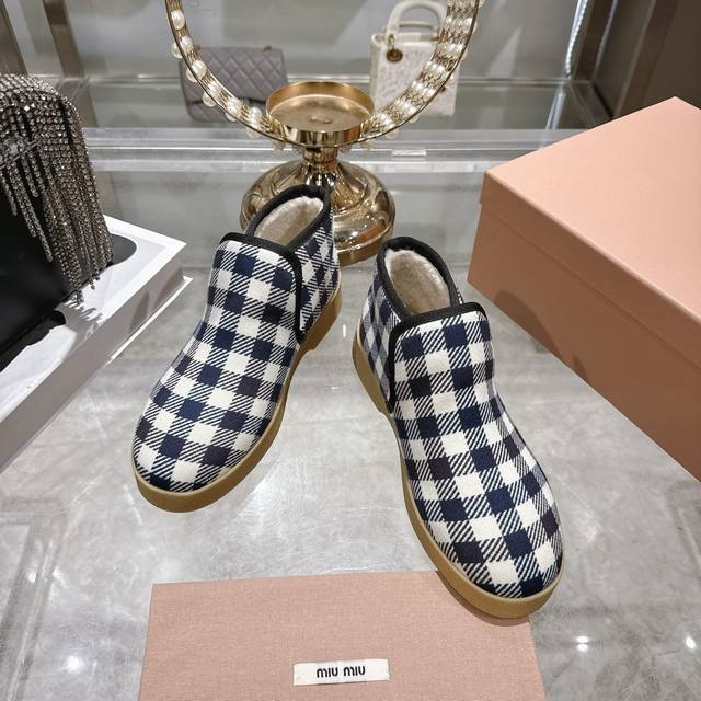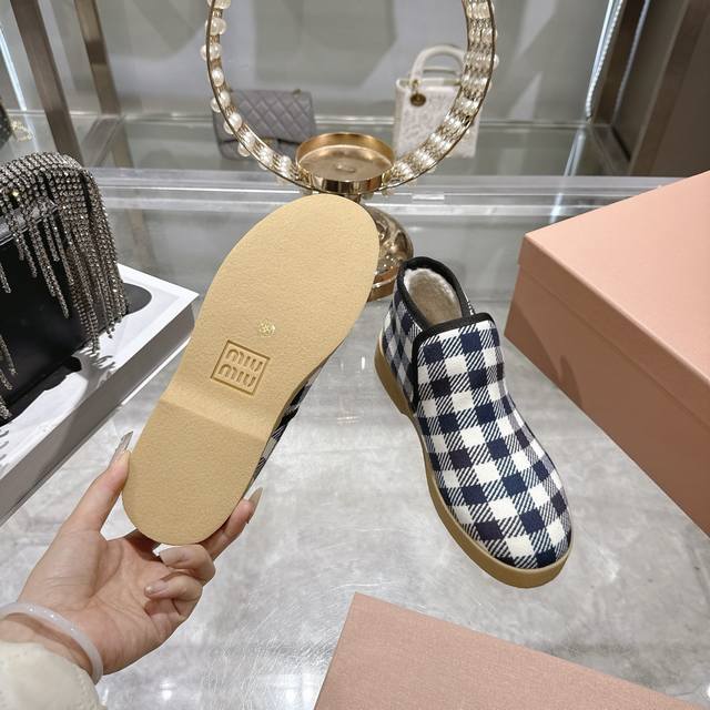 Factory direct Miu Miu fur slippers, 2025 Autumn/Winter new style cotton shoes and fur boots from the Miu Miu series. Details of the new season's trendy elements. Material: Imported Australian thickened and dense wool. Lining: Original lining. Outsole: Original molded sole. Sizes: 35-40, 40, 41. Custom orders are non-refundable.