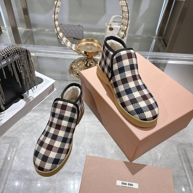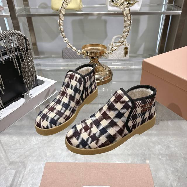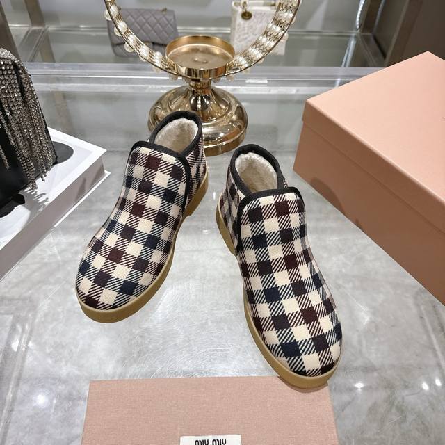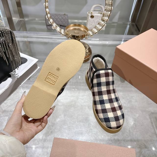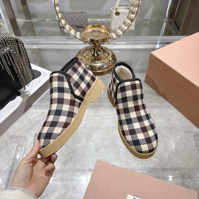 Factory direct Miu Miu fur slippers, 2025 Autumn/Winter new style cotton shoes and fur boots from the Miu Miu series. Details of the new season's trendy elements. Material: Imported Australian thickened and dense wool. Lining: Original lining. Outsole: Original molded sole. Sizes: 35-40, 40, 41. Custom orders are non-refundable.