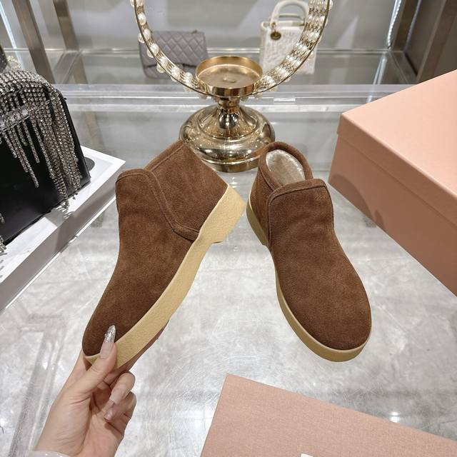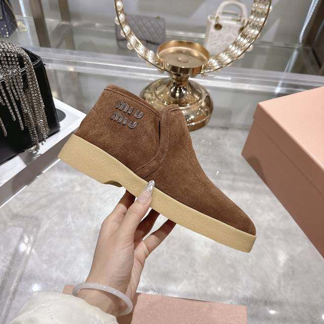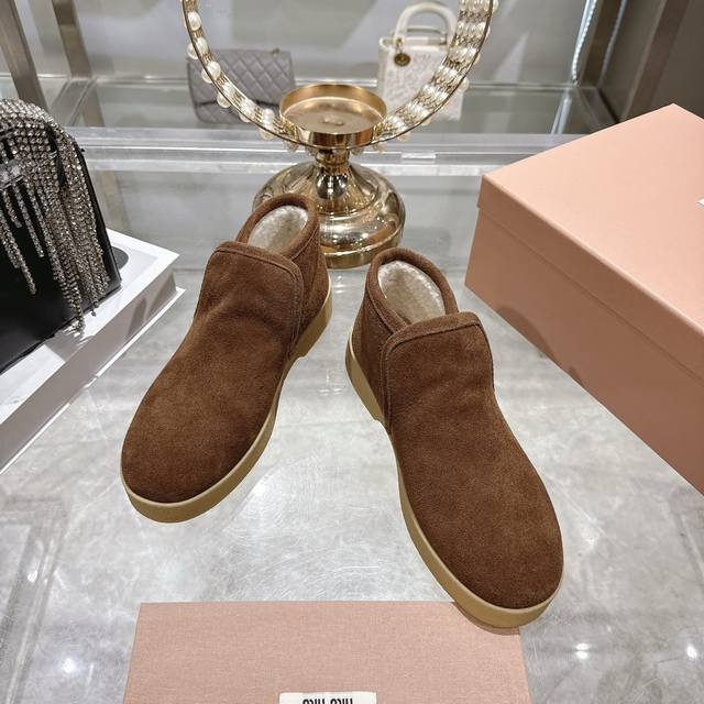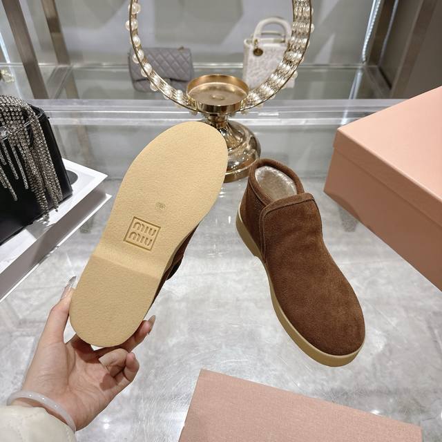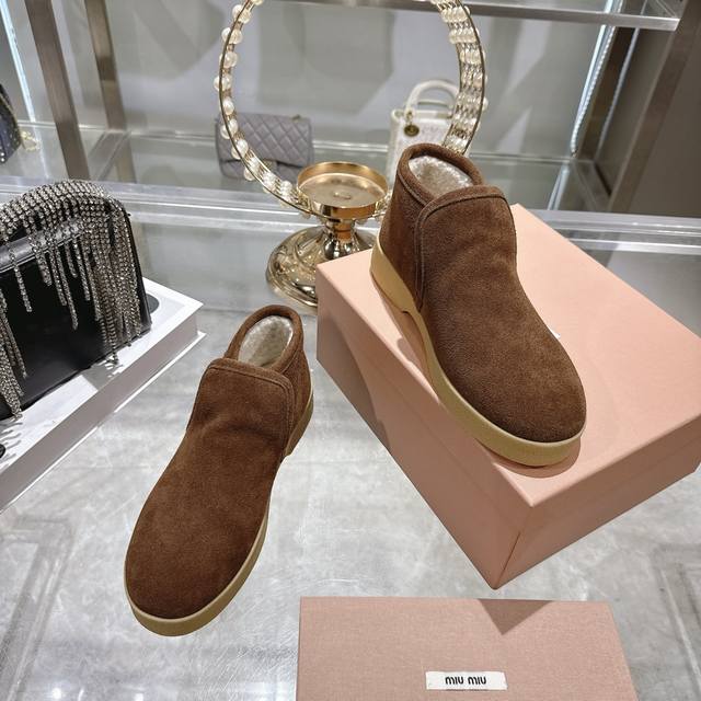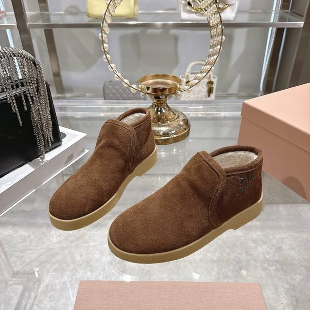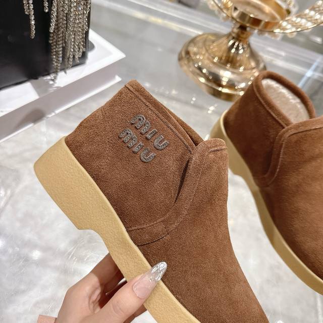 Factory direct Miu Miu fur slippers, 2025 Autumn/Winter new style cotton shoes and fur boots from the Miu Miu series. Details of the new season's trendy elements. Material: Imported Australian thickened and dense wool. Lining: Original lining. Outsole: Original molded sole. Sizes: 35-40, 40, 41. Custom orders are non-refundable.