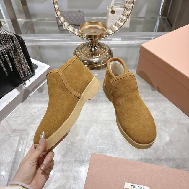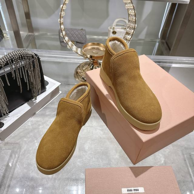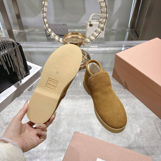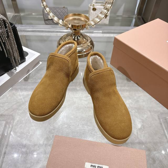 Factory direct Miu Miu fur slippers, 2025 Autumn/Winter new style cotton shoes and fur boots from the Miu Miu series. Details of the new season's trendy elements. Material: Imported Australian thickened and dense wool. Lining: Original lining. Outsole: Original molded sole. Sizes: 35-40, 40, 41. Custom orders are non-refundable.