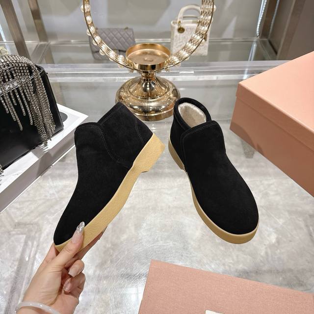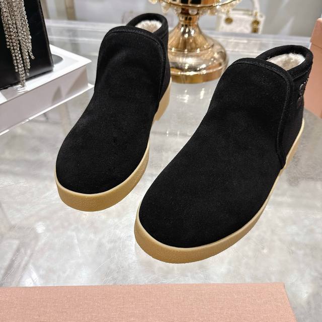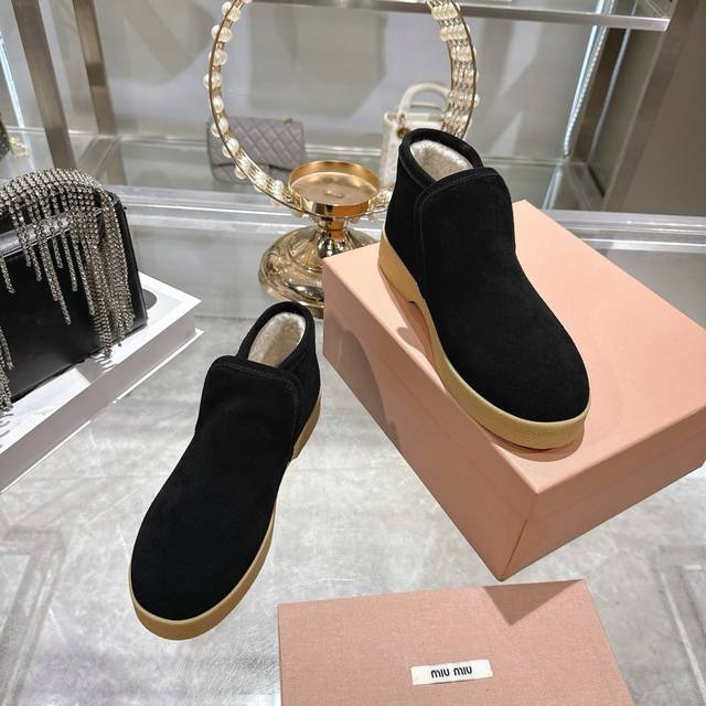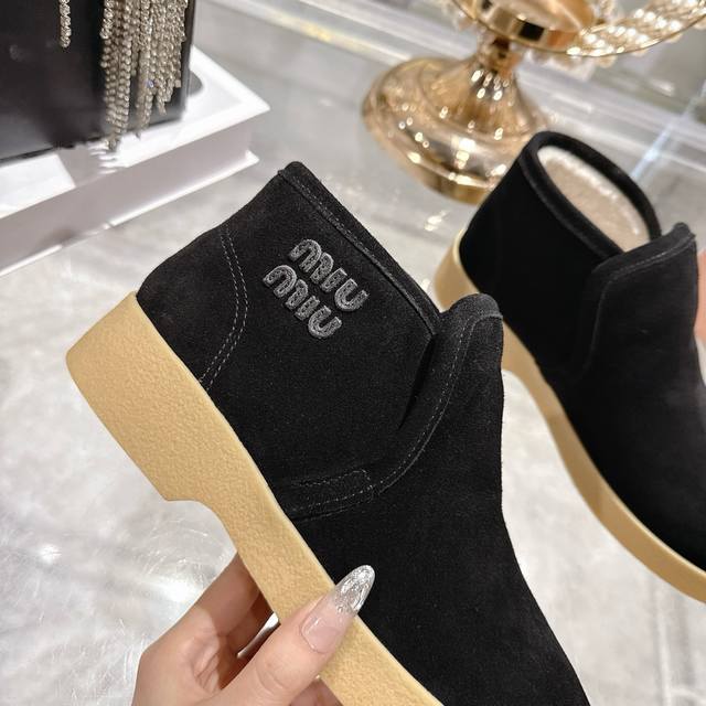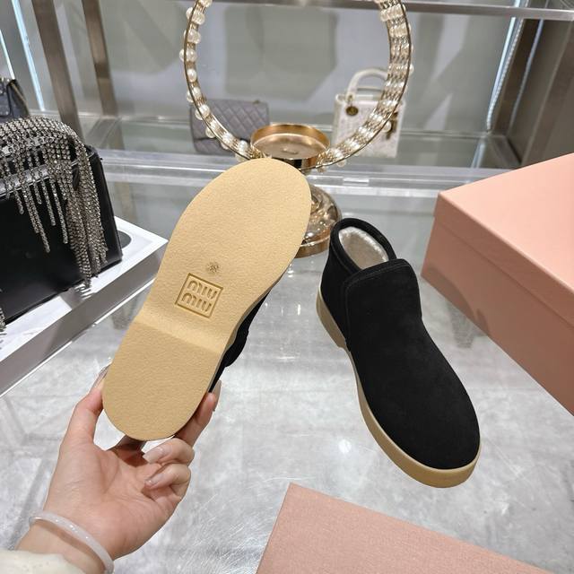Factory direct Miu Miu fur slippers, 2025 Autumn/Winter new style cotton shoes and fur boots from the Miu Miu series. Details of the new season's trendy elements. Material: Imported Australian thickened and dense wool. Lining: Original lining. Outsole: Original molded sole. Sizes: 35-40, 40, 41. Custom orders are non-refundable.