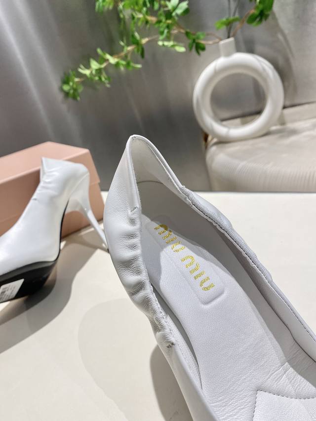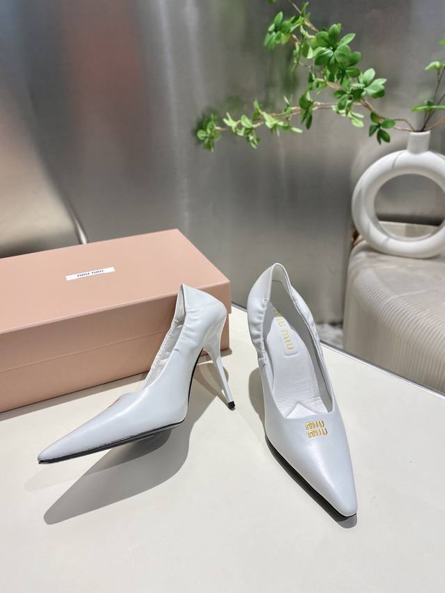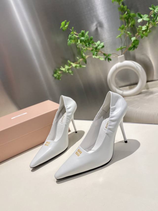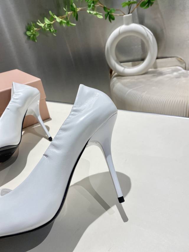 Factory direct Miu Miu runway style 2025 Spring/Summer new high-heeled shoes. A popular runway style, these shoes look amazing on! 1:1 custom-made fashionable high-heeled women's shoes, beautifully elongating the leg lines, easy for fashion-conscious ladies to wear, definitely a must-have item for spring and summer. Material: Outer material is sheepskin, suede is available in two versions, inner lining is sheepskin. Sizes: 34-40. Sizes 34 and 40 are custom-made, no returns or exchanges. Heel height: 10.5cm.