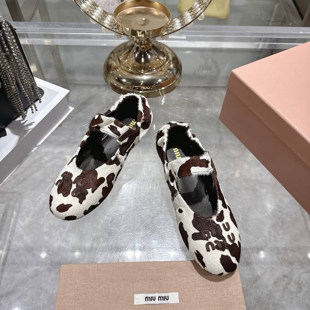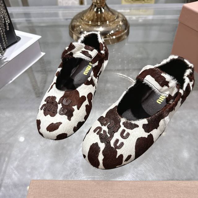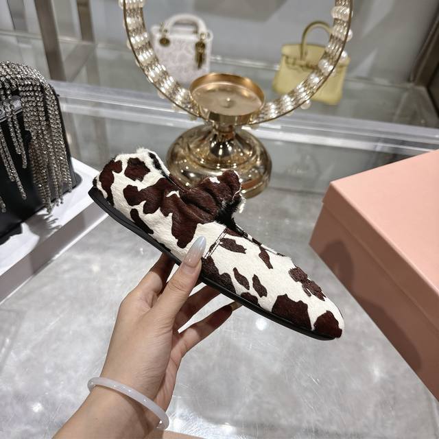 Factory direct Miumiu 26Ss early spring runway new style slip-on ballet flats. Official spring/summer runway new style, fashionable and versatile, can be both sweet and edgy, won't rub your feet, super youthful whether worn barefoot or with socks! Many colors available, incredibly versatile! Upper: Custom horsehair; Lining: Sheepskin; Sole: Original rubber outsole; Sizes: 35-39, 40.41. Custom orders, no returns or exchanges.