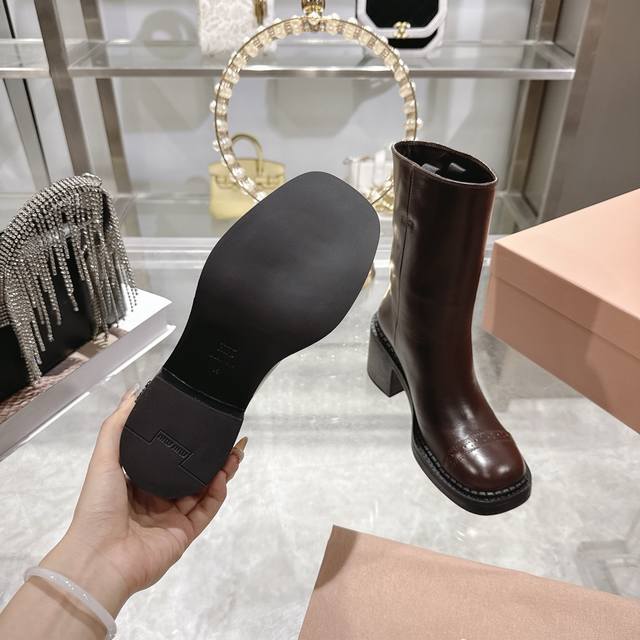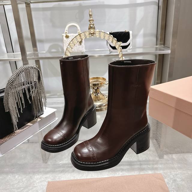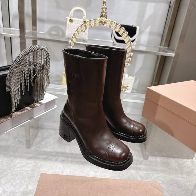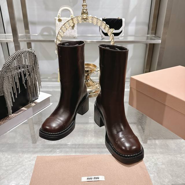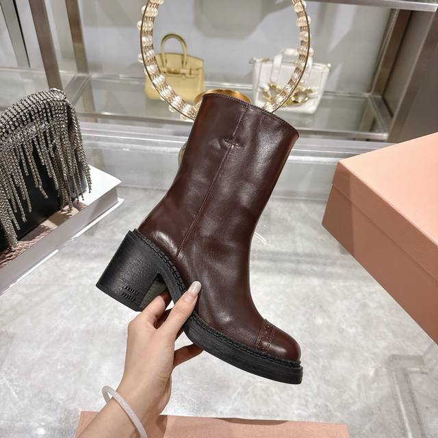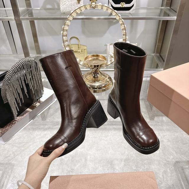 Factory direct Miumiu Fall/Winter Newest Retro Leather Boots DDD Many celebrities and fashion bloggers have recommended these boots. The current trend of a split design combined with Maillard-colored leather creates a unisex casual style. The retro distressed leather exudes a high-end feel, cool yet casual. The slouchy boot shaft adds a fashionable and sophisticated touch. Suitable for various styles of clothing. Imported distressed calfskin upper, 5cm heel, original mold, non-slip sole. Size: 35-41 40 41. Custom orders are non-refundable. DDD