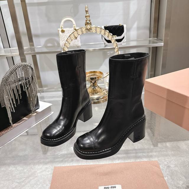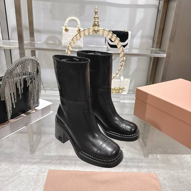 Factory direct Miumiu Fall/Winter Newest Retro Leather Boots DDD Many celebrities and fashion bloggers have recommended these boots. The current trend of a split design combined with Maillard-colored leather creates a unisex casual style. The retro distressed leather exudes a high-end feel, cool yet casual. The slouchy boot shaft adds a fashionable and sophisticated touch. Suitable for various styles of clothing. Imported distressed calfskin upper, 5cm heel, original mold, non-slip sole. Size: 35-41 40 41. Custom orders are non-refundable. DDD