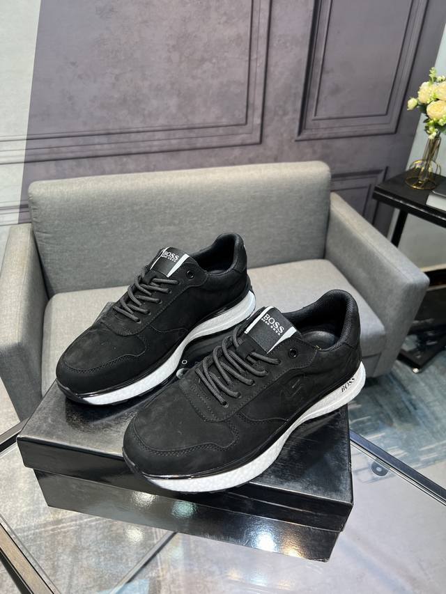 Factory direct price Boss latest casual men's shoes, high-quality workmanship, genuine cowhide upper and insole, stylish rubber outsole, casual and fashionable, high-end quality, sizes: 38-44. Size 45 can be customized, no returns or exchanges! DDD