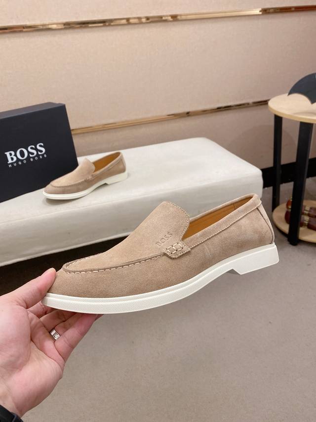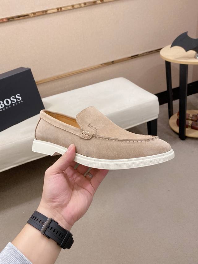Factory direct price Boss Men's premium casual leather shoes, top quality, imported suede cowhide upper, water-dyed cowhide lining, genuine leather welt, comfortable foam outsole, standard sizes 39-44, 38, 45, 46, 47. Custom sizes available.