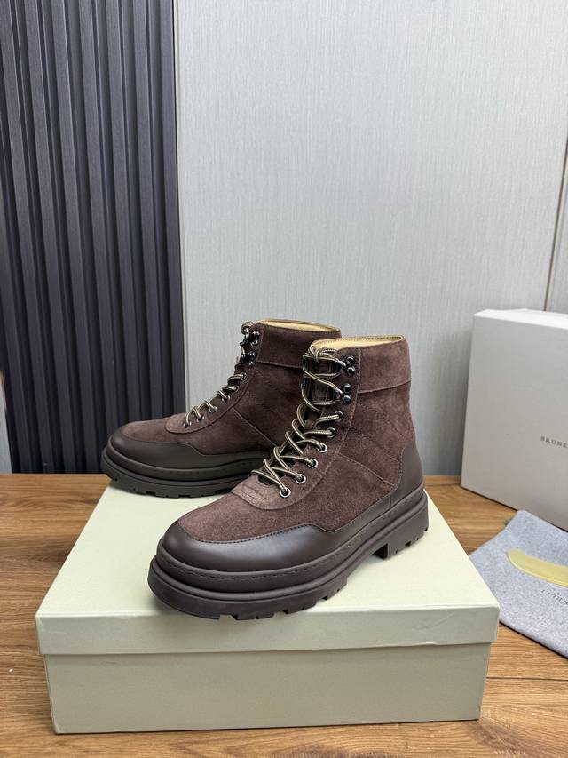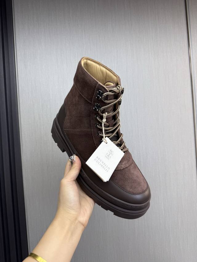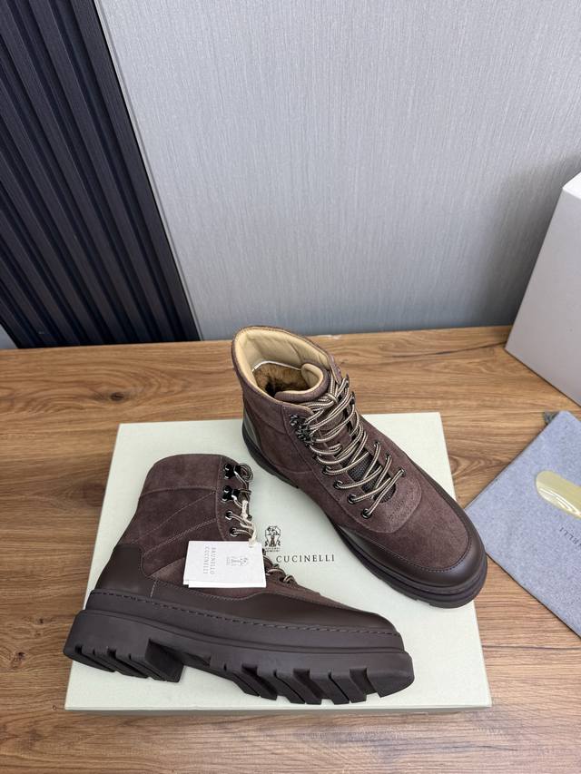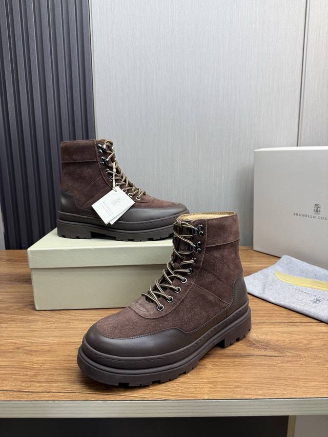 Factory direct price, Brunello Cucinelli new arrivals, Autumn/Winter men's combat boots, 1:1 replica, imported cow suede, original sole. Sizes: 39-40-41-42-43-44. Custom sizes available. Sizes 3, 4, and 5 are non-refundable.