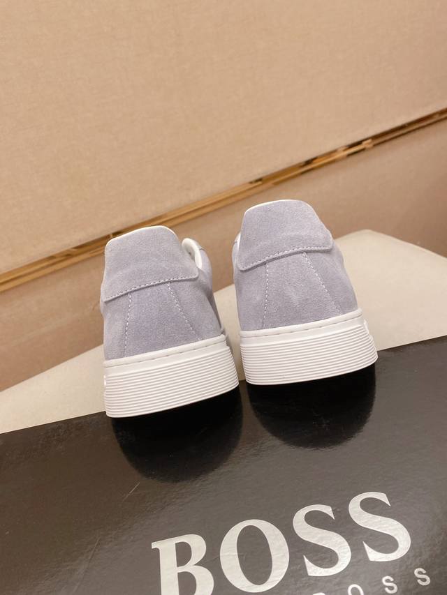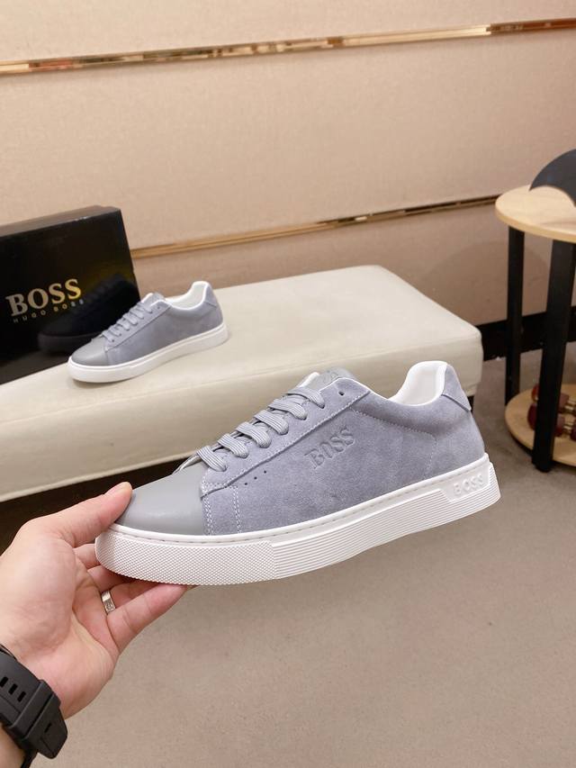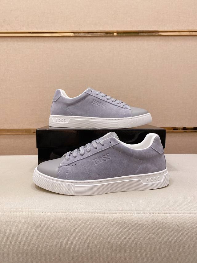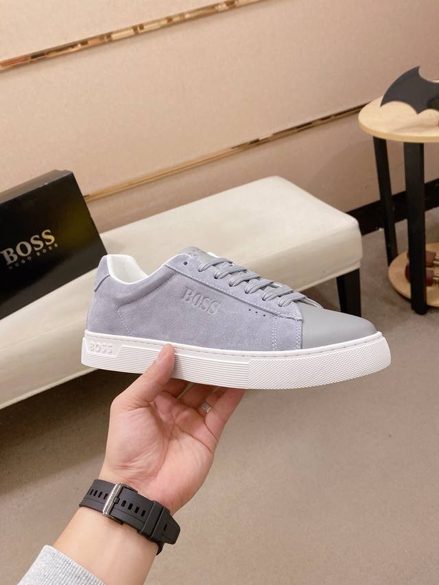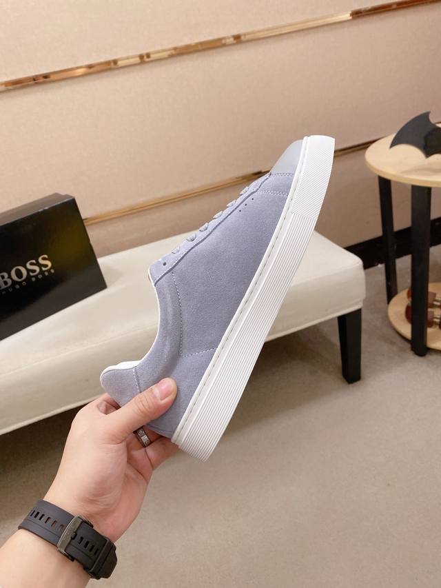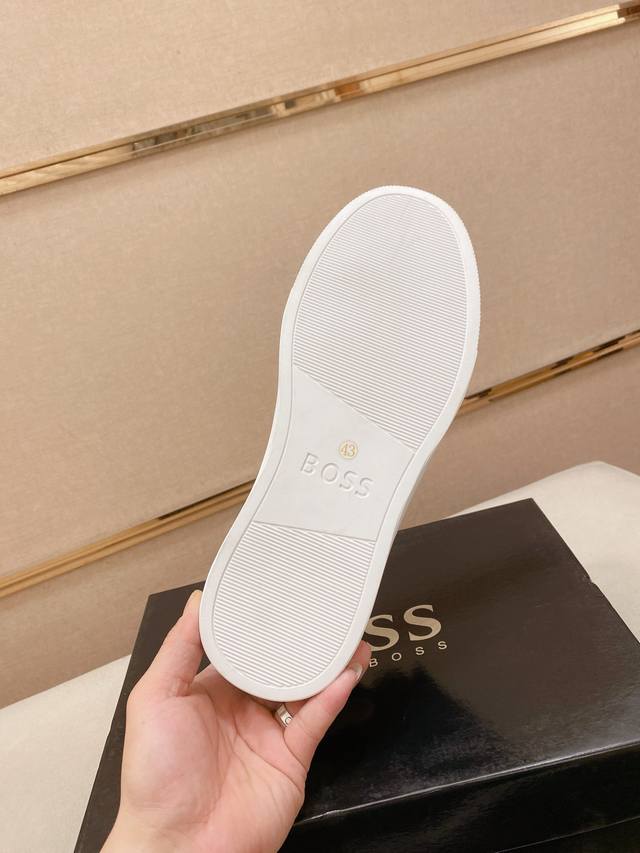 Factory direct price for men's sports shoes, original Boss brand, latest casual men's shoes. Welcome to compare 1:1. Hot-selling Boss Hong Kong boutique casual shoes, boutique quality, supports inspection, excellent workmanship, upper made of Italian imported calfskin breathable sheepskin lining, original fashionable sports outsole, casual and stylish, high-end quality. Sizes: 38-44 DDD