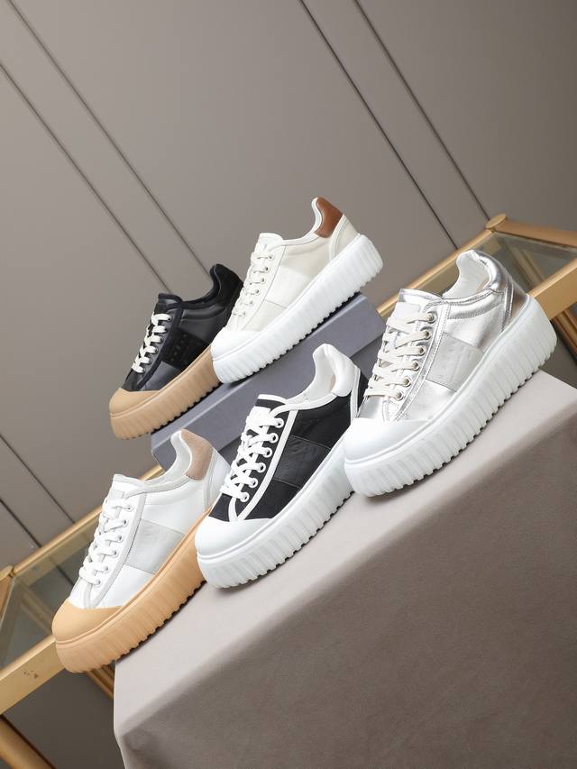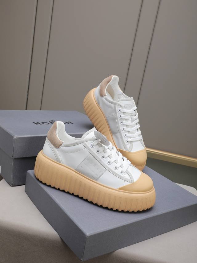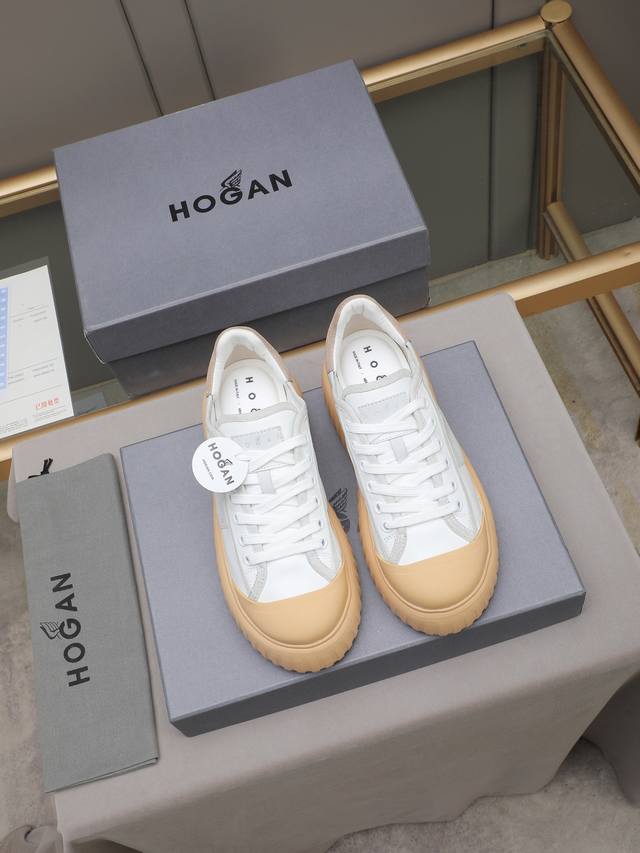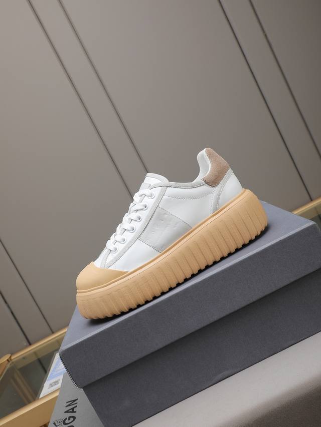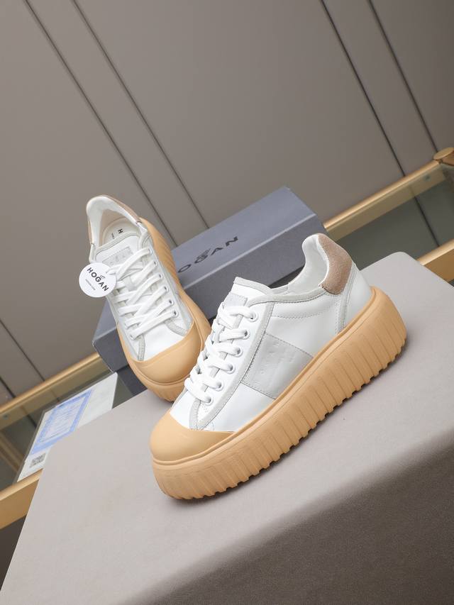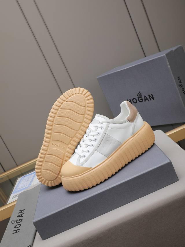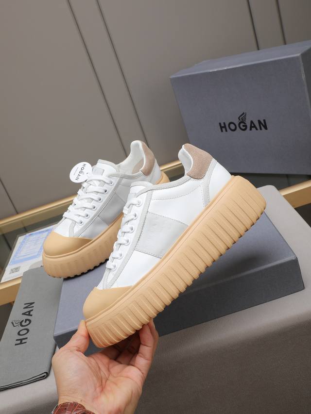 Factory direct price, Hogan new style, unisex couple style, fashionable round toe genuine leather lace-up, sporty and casual, thick sole that instantly adds 55mm in height. Silk-woven cowhide trim, contrasting color blocking, smooth lines outlining a modern minimalist aesthetic, closed toe, embossed logo on the tongue, high-elastic insole for comfortable and beautiful feet. A classic trendy shoe that will never go out of style, you and your partner deserve it. Unisex couple style, sizes 36-44, 35-45, custom orders are non-refundable.