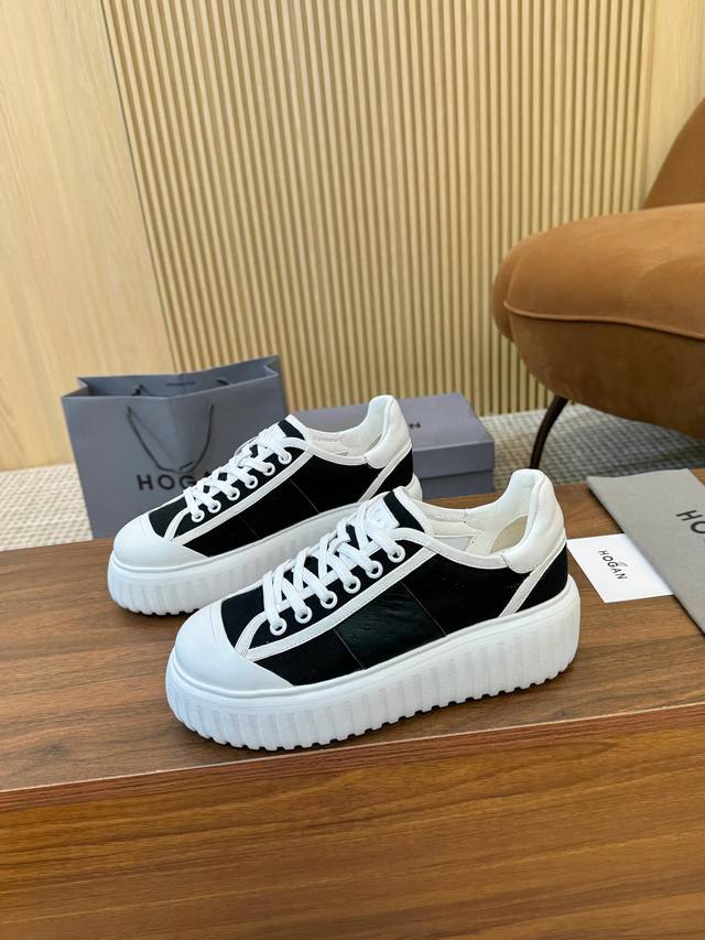 Factory direct price DDD Hogan new style, unisex couple style DDD Fashionable round toe genuine leather lace-up, sporty and casual, thick sole instantly adds 55mm height. Silk-woven cowhide trim, contrasting color blocking, smooth lines outline a modern minimalist aesthetic, closed toe, embossed logo on the tongue, high-elastic insole for comfortable and beautiful feet. A classic trendy shoe that will never go out of style, you and your partner deserve it. Unisex couple style, sizes 36-44, 35, 45 custom-made, no returns or exchanges DDD