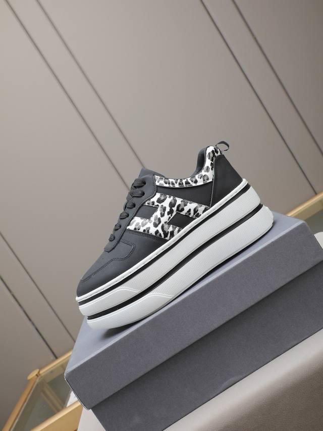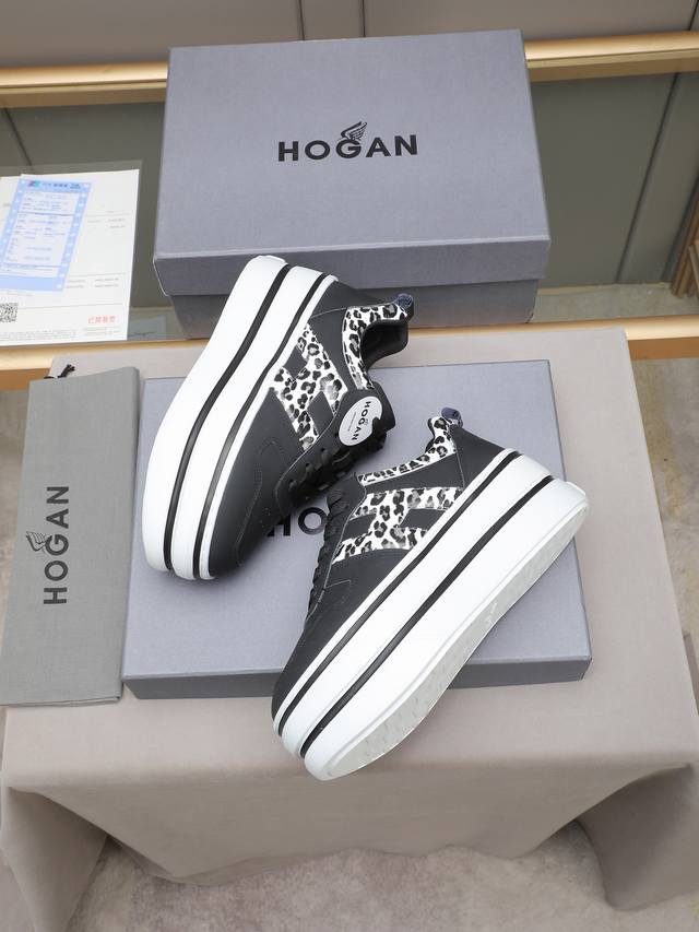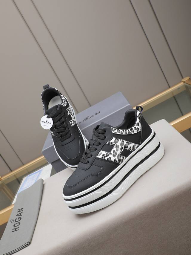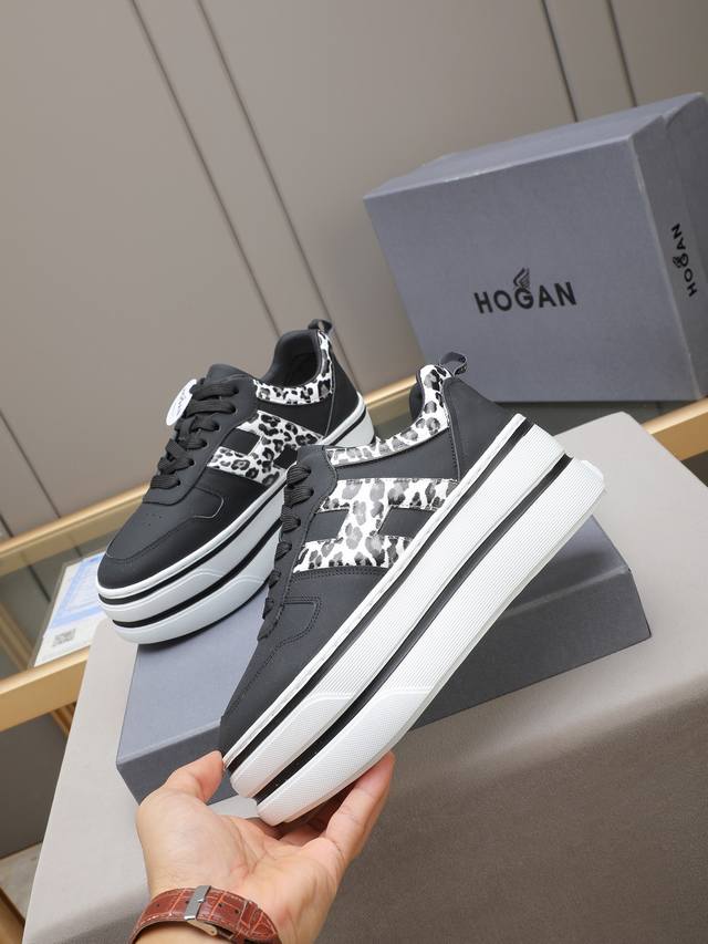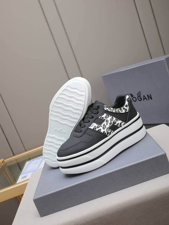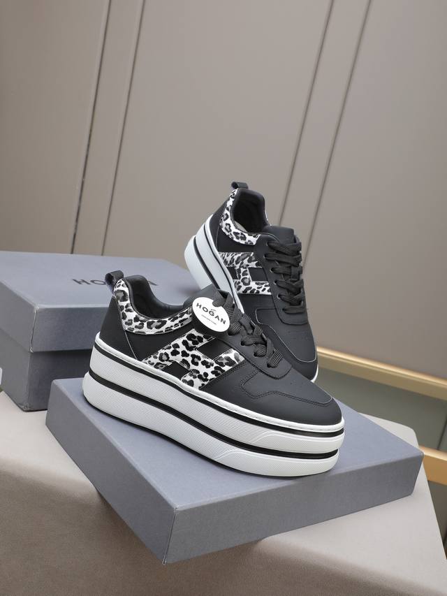 Factory direct price, Hogan new style, women's fashionable round-toe lace-up athletic casual shoes, double-layer thick sole, instantly adding 70mm in height. Silk calfskin color blocking, smooth lines outlining a new era of beauty. High-elastic insole massages your feet while walking. A pair of fashionable, comfortable, and luxurious high-quality shoes you deserve. Sizes 35-40. DDD