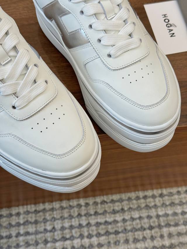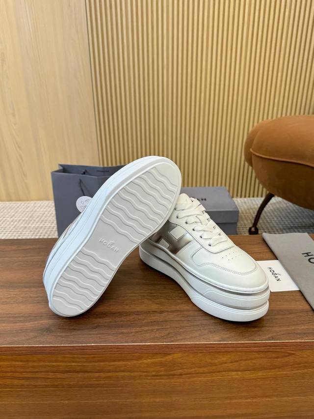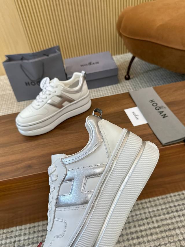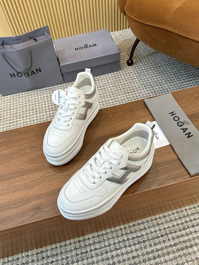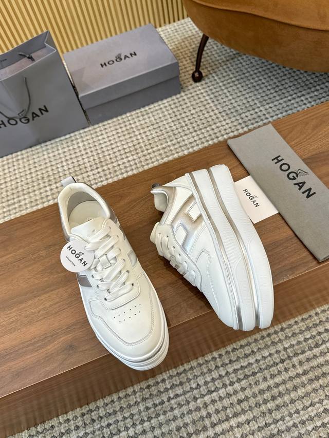 Factory direct price DDD Hogan's new style, [Women's fashionable round toe lace-up athletic casual shoes, double-layer thick sole, instantly adding 70mm to your height. Silk calfskin color blocking, smooth lines outlining a new era of beauty. High-elastic insole massages your feet while walking. A pair of fashionable, comfortable, and luxurious high-quality shoes you deserve, size 35-40. DDD]