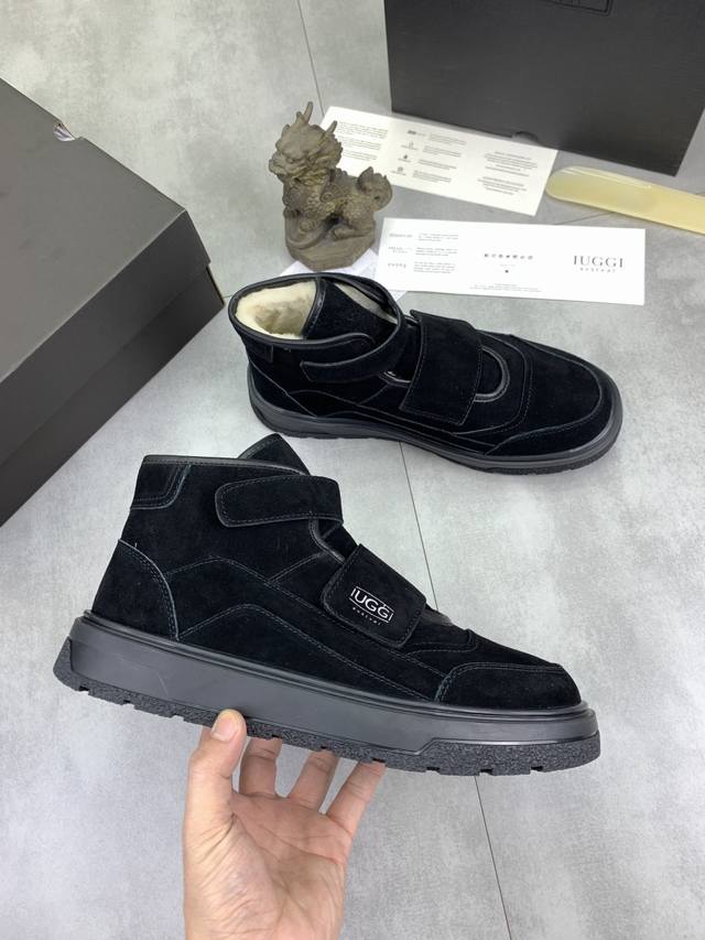Factory direct price men's clothing, shoes, sportswear, original order, new arrivals, 26 new style Iuggi Velcro men's shoes. Fashionable and casual Velcro men's shoes. Made of top-grain suede cowhide with a wool lining. Lightweight and non-slip rubber outsole. Size: 39-44. Colors: Three colors.