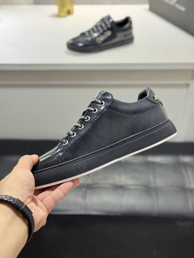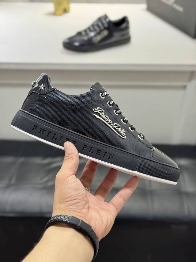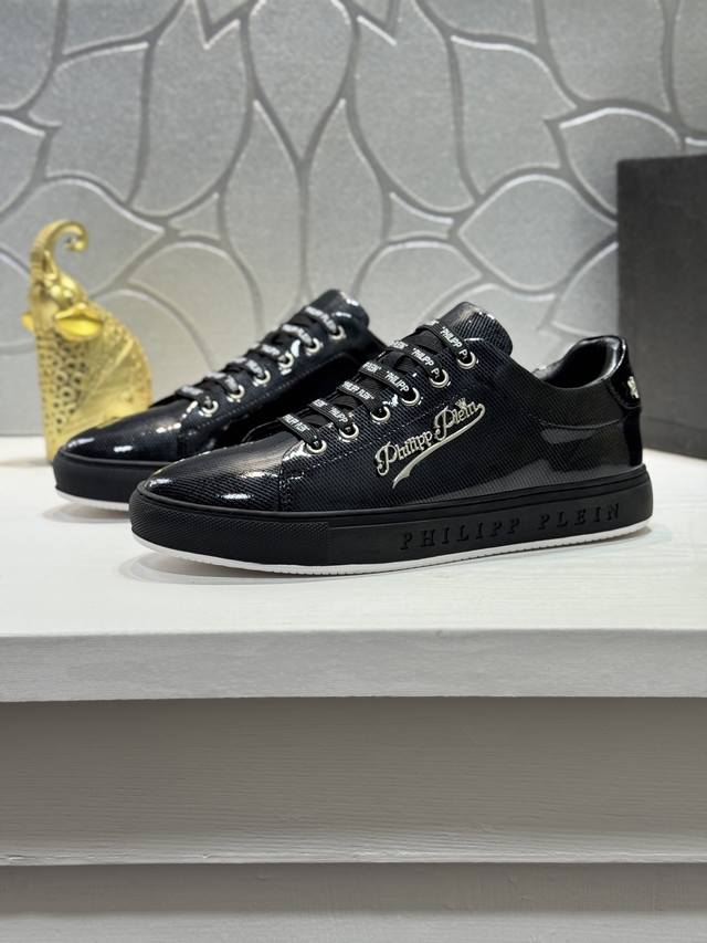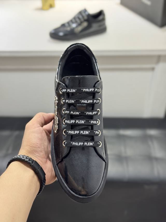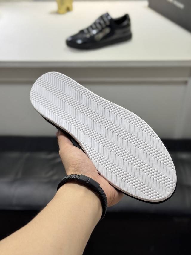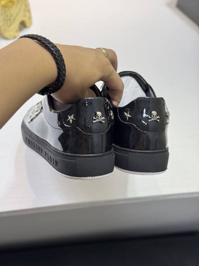 Factory direct price men's clothing, shoes, sportswear, original single Philipp Plein men's casual shoes. Based on classic designs, these Plein trendy men's casual shoes feature a streamlined design. They are crafted with cowhide leather, hardware, and a sheepskin lining, creating a distinct layered look that enhances their style and makes them incredibly durable. Sizes: 38-44, 45 (custom sizes available).