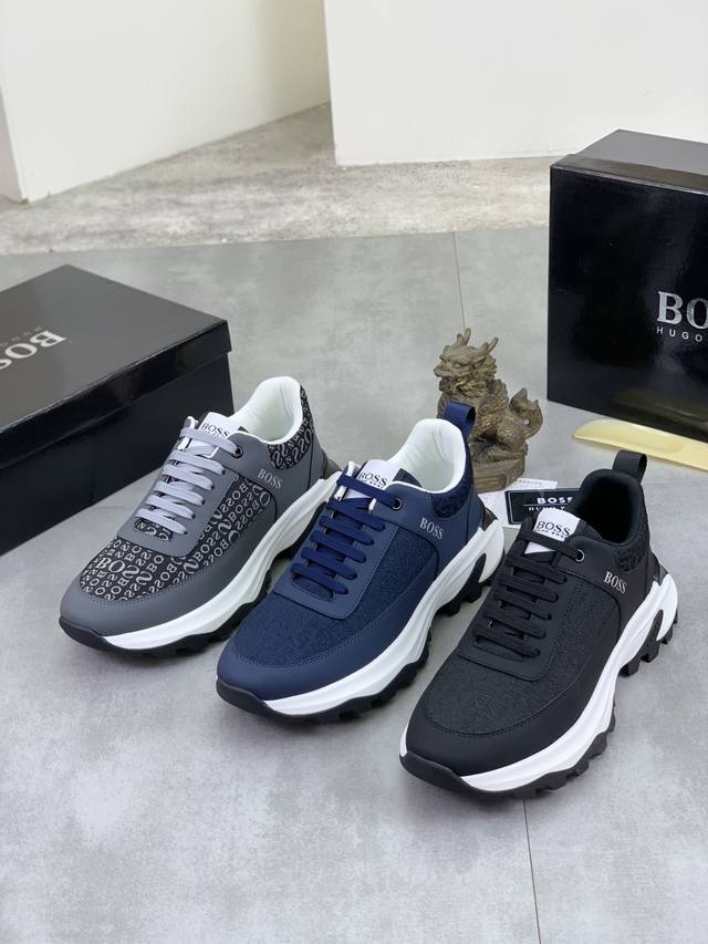 Factory direct price men's sports shoes, original Boss 2025 lace-up classic high-top casual shoes. This is an official classic style, high quality, made by original factory masters, using imported flyknit breathable fabric, comfortable and breathable mesh lining, sheepskin insole , perfect last, generous and fashionable design, attracting many consumers. Suitable for drivers. The highest quality on the market. Colors: 3 colors available. Sizes: 38-44-45. Custom made.