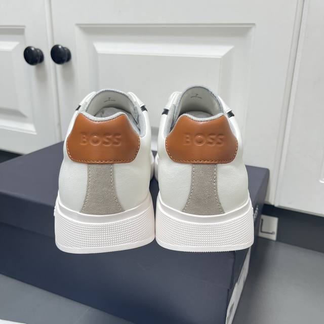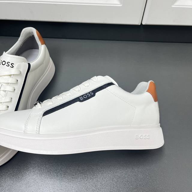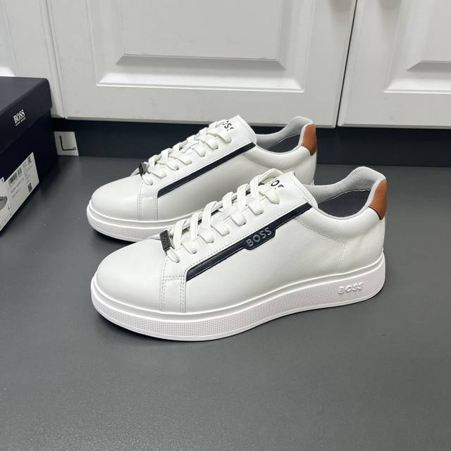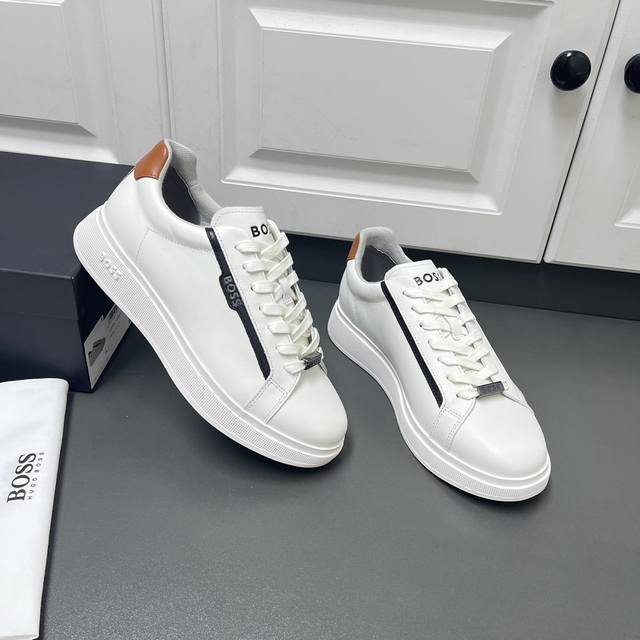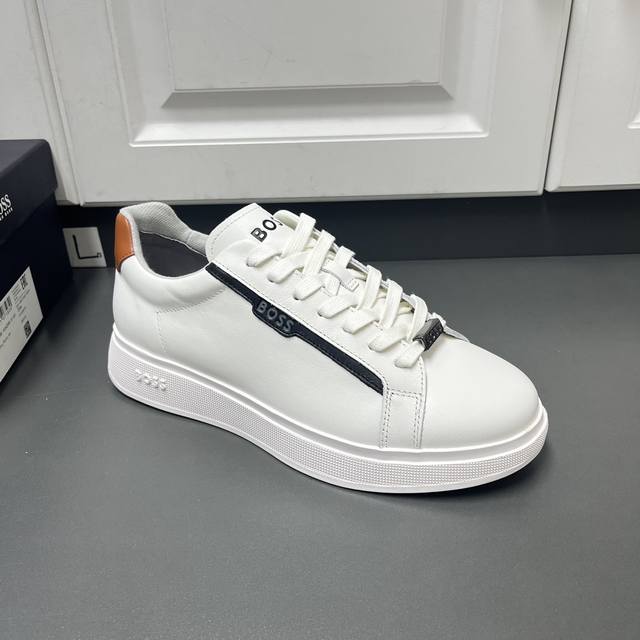 Factory direct price men's sports shoes, original Boss brand. Exquisite sports casual shoes, featuring embossed logo lettering on the sides, contrasting leather trim with the brand logo on both sides, brand-identified lace loops on the upper, lightweight TPR outsole, comfortable and breathable, soft fabric lining, excellent quality, superb workmanship, comes with original box and dust bag! Sizes: 38-46 (standard leather shoe sizes)