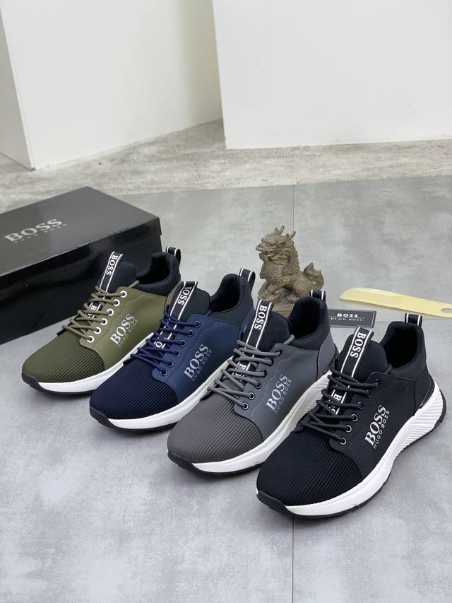 Factory direct price men's sports shoes original Boss original lace-up men's classic high-top casual shoes. This is the official flagship classic style, high quality, made by original factory masters, using imported flyknit breathable fabric, comfortable and breathable mesh lining, sheepskin insole, perfect last, generous and fashionable design, attracting many consumers. Suitable for driving, it offers the highest quality on the market. Colors: 4 colors available. Sizes: 38-44-45. Custom made.