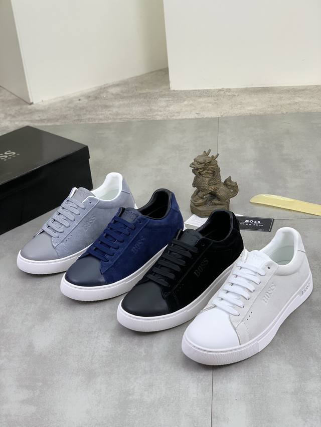 Factory direct price men's sports shoes, original Boss style lace-up men's classic high-top casual shoes. This is the official flagship classic style, high quality, made by original factory masters, using imported flyknit breathable fabric, comfortable and breathable mesh lining, sheepskin insole, perfect last, generous and fashionable design, attracting many consumers. Suitable for drivers, it offers the highest quality on the market. Colors: 4 colors available. Sizes: 38-44-45. Custom-made.