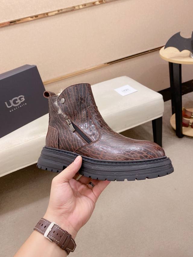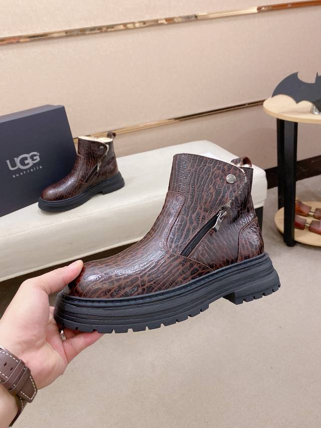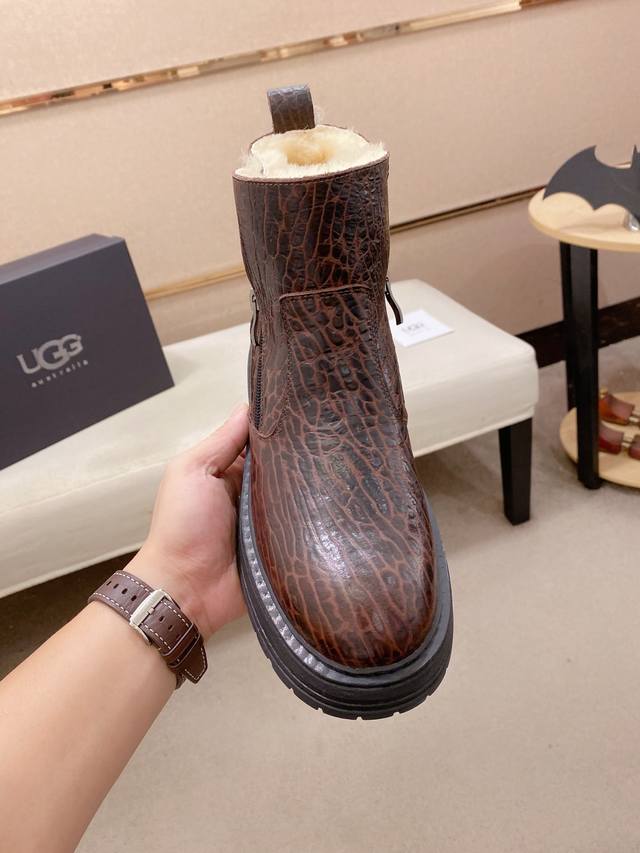 Factory direct price men's sports shoes, original high-end goods, Ugg latest style, 1:1 quality. Material: European imported cowhide, high-quality top-grain cowhide. Lining: wool lining. Sole: pure imported rubber outsole. High-end goods, exquisite workmanship, trendy and fashionable. Very classy to wear. Those who know their stuff will find it irresistible. Sizes: 38-44. Custom sizes 45 and above are available.