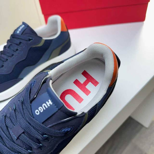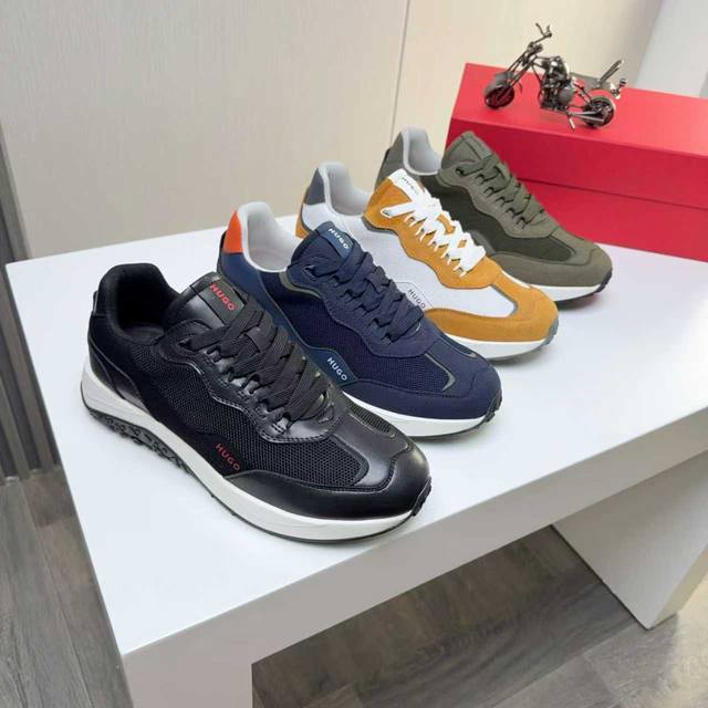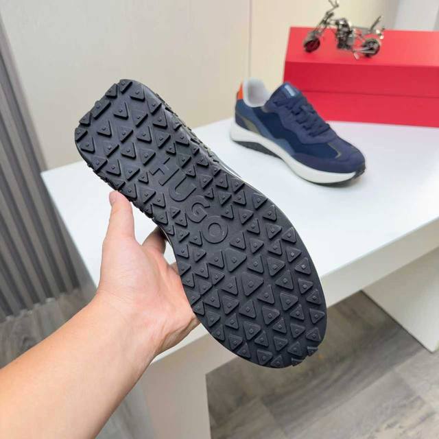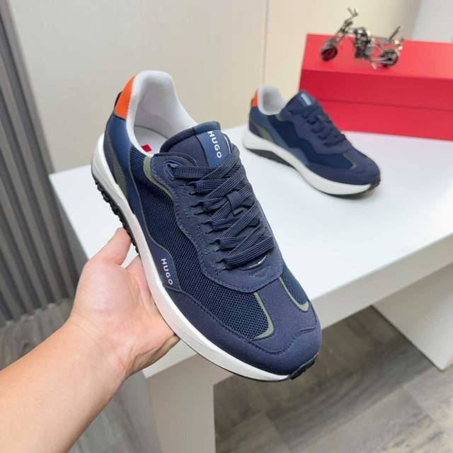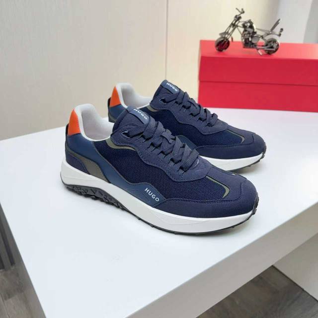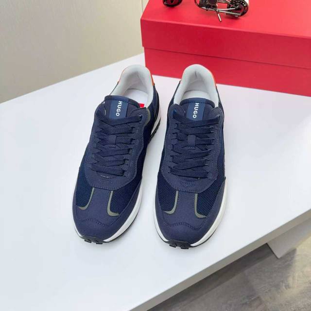 Factory direct price men's sports shoes original Hugo Boss] Hot-selling original 1:1 replica, high-end boutique with meticulous details. The upper uses a combination of Flying fabric and microfiber, sports lining, and brand PU outsole. Lightweight and comfortable to wear, stylish and casual, a must-have. Available in 4 colors! Sizes 39 and 45 DDD