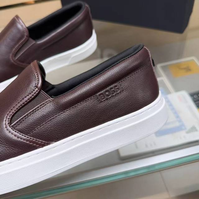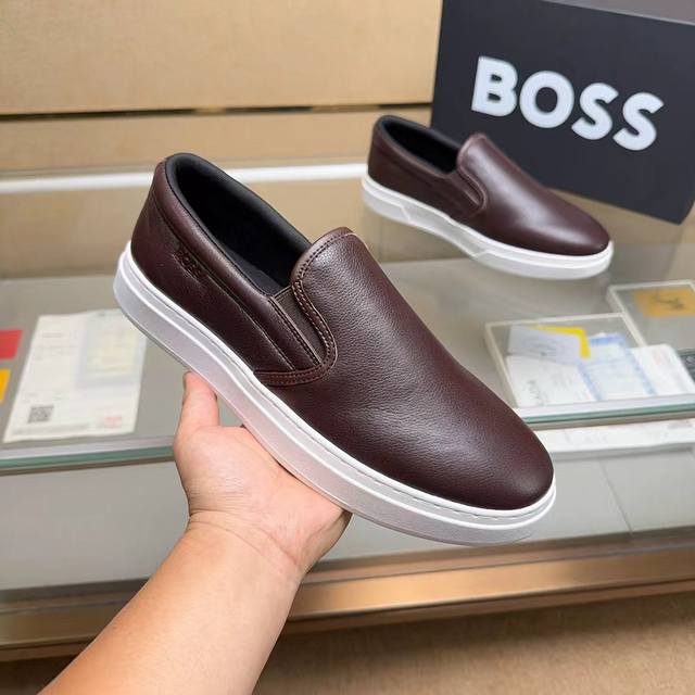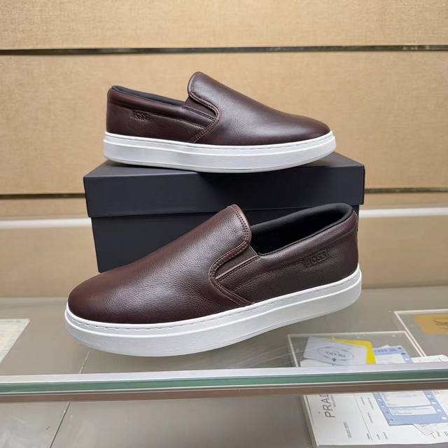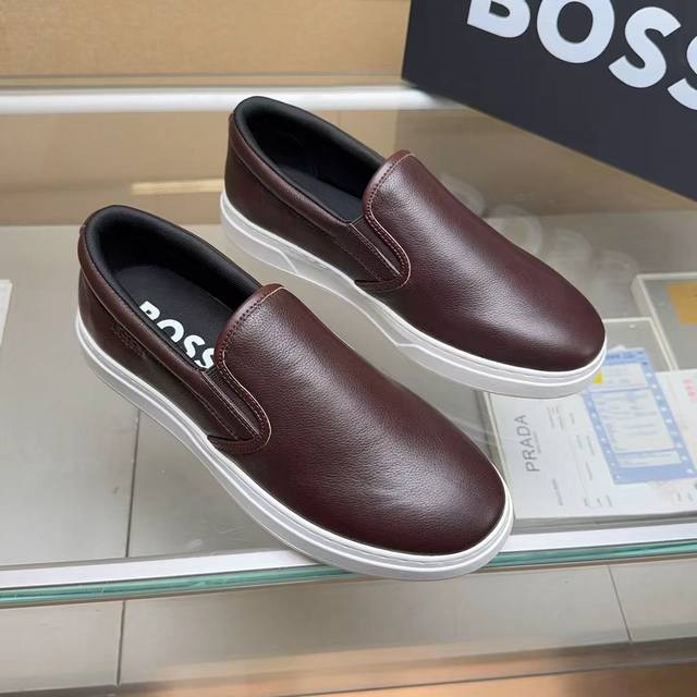 Factory direct price men's sports shoes, original single, 2025 new Boss official website new high-end series sports and casual men's shoes, with classic design, becoming a timeless fashion favorite, classic casual style. Lightweight slip-on design for easy on and off, brand logo embellishment to highlight brand charm; brand rubber outsole, wear-resistant, lightweight, sizes: 38-46 DDD