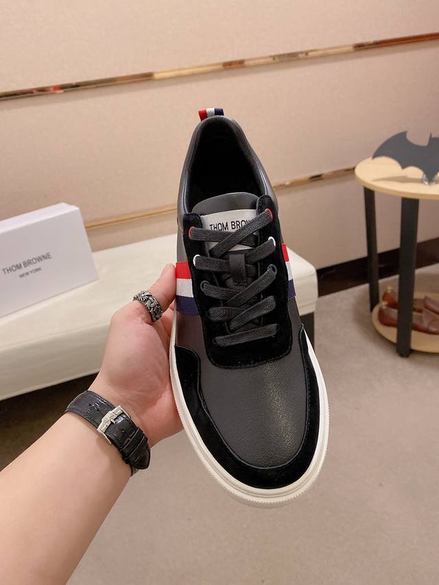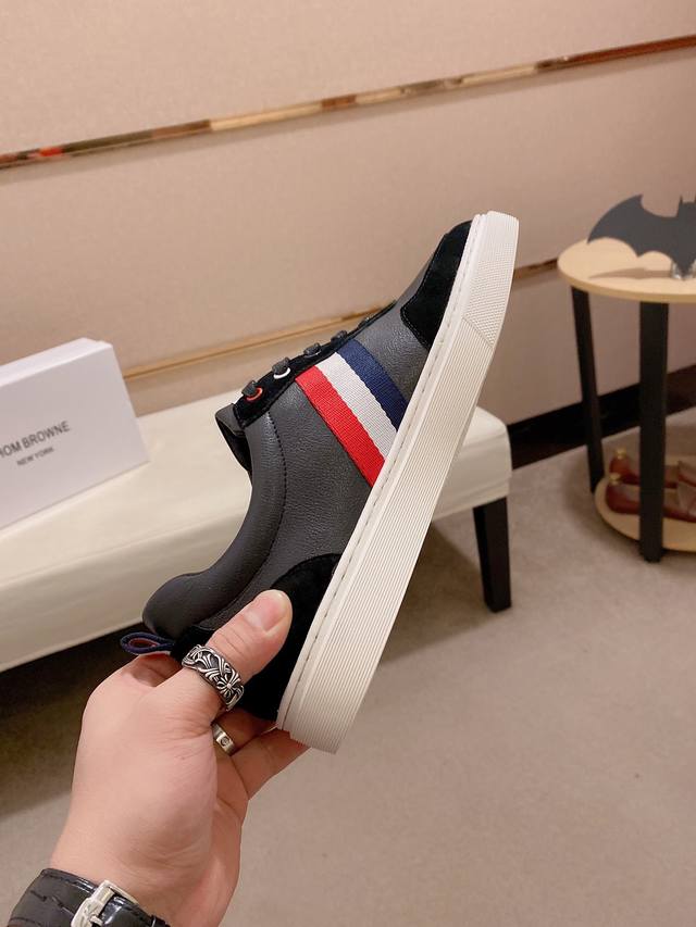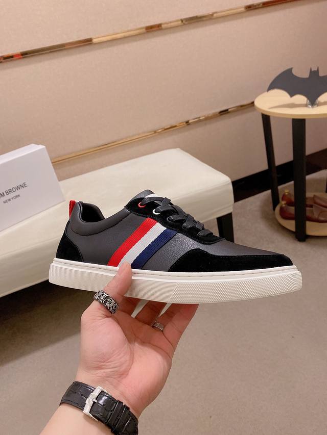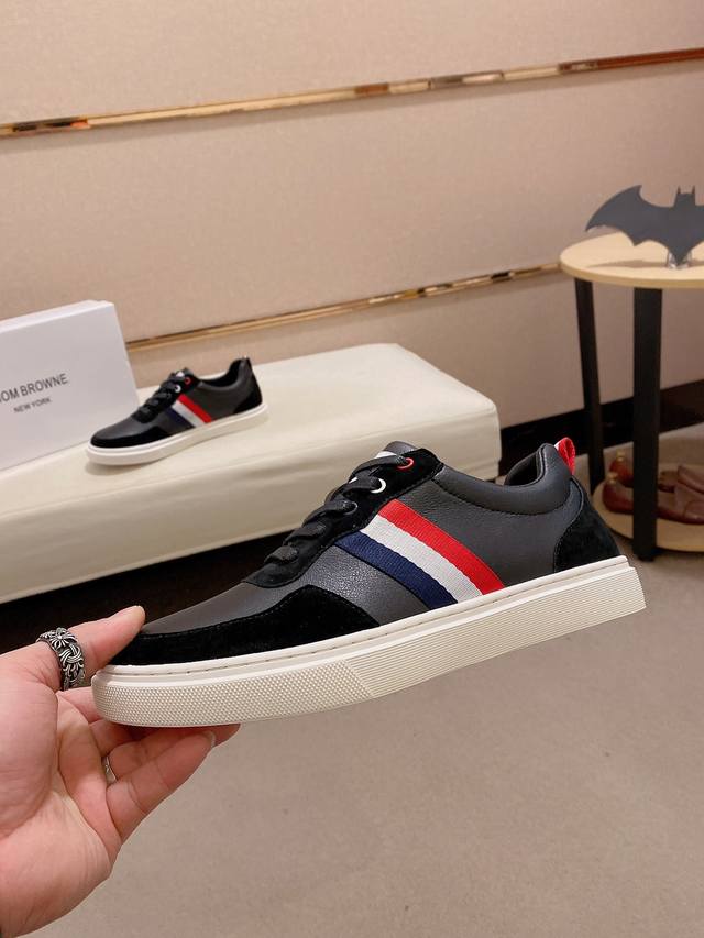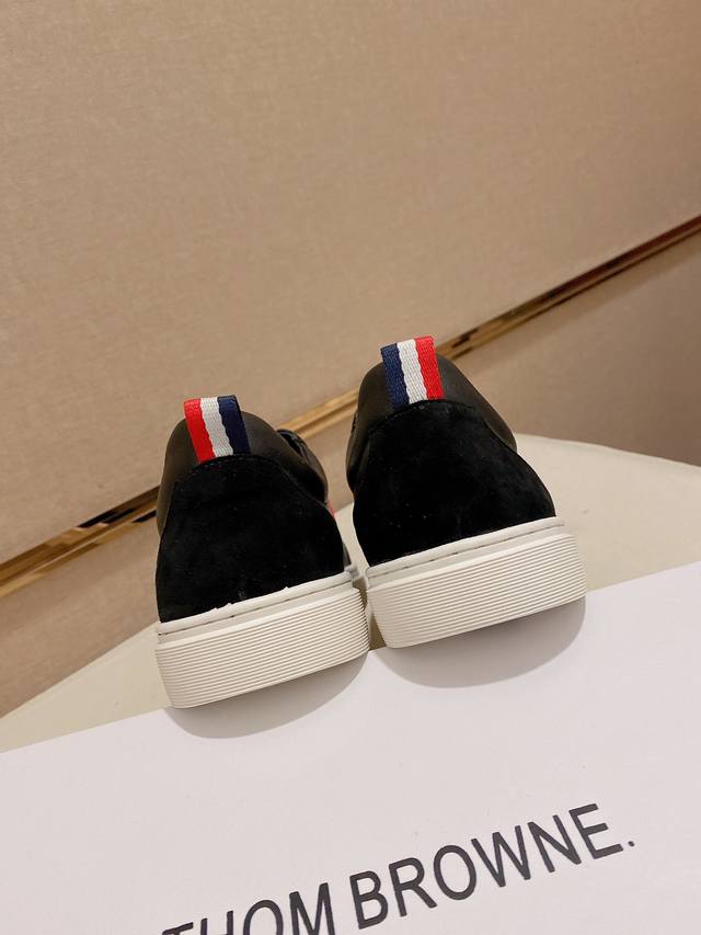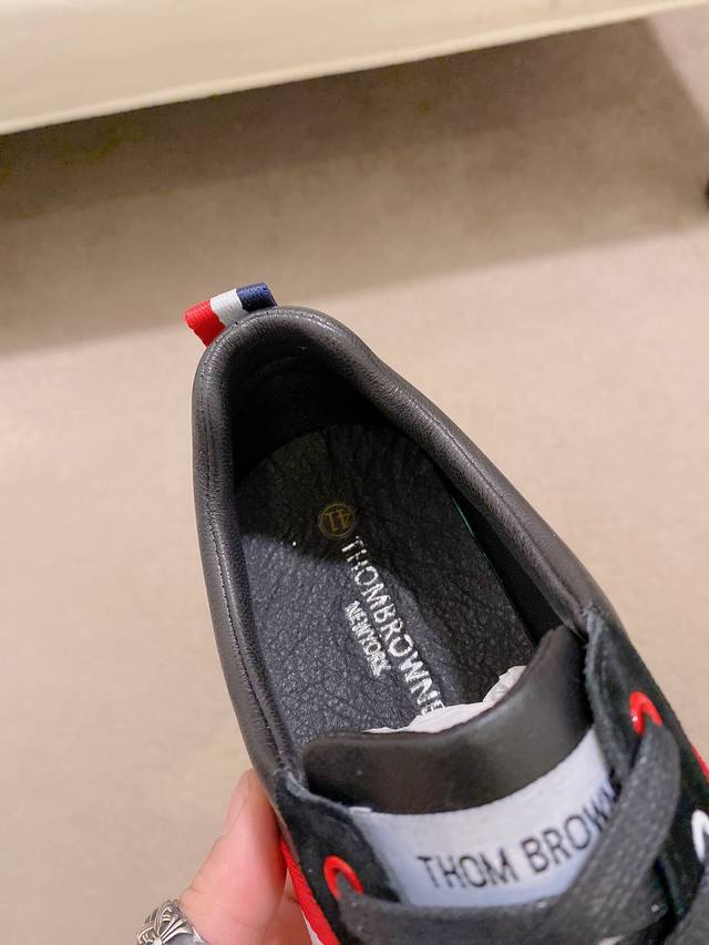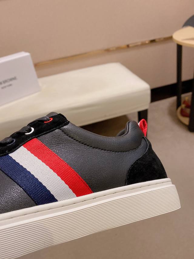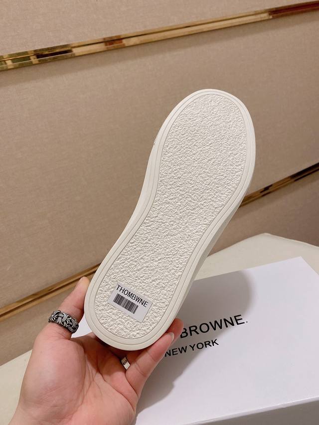 Factory direct price men's sports shoes original single high-end version sheepskin lining Thom Browne New York Tom Browne is back with another hot item! This edgy and cool new brand gives us a relaxed, stylish and individual new choice this summer. Tb white shoe storm. The upper is made of original imported cowhide, the lining is sheepskin, the sole is made of original sole, and the webbing with red, white and blue stripes highlights the brand elements. Sizes: 38-44 DDD