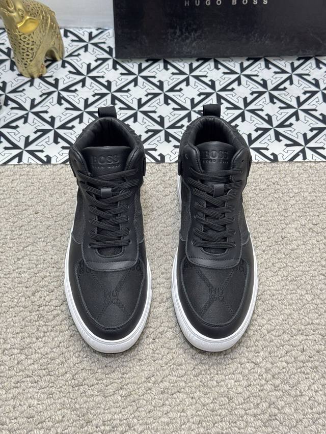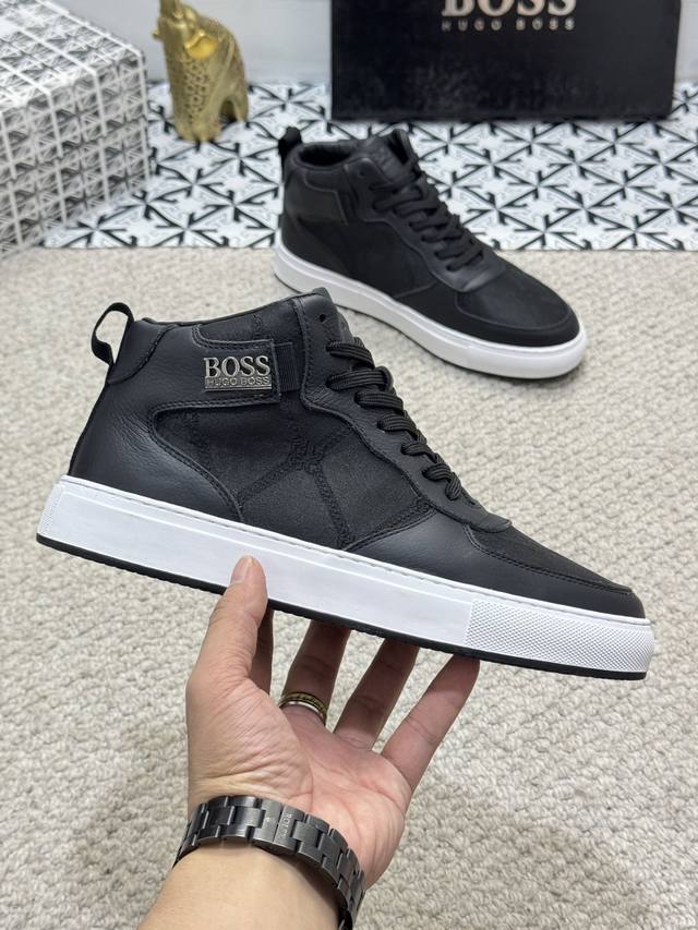 Factory direct price men's sports shoes, original single-piece men's boutique - Boss new high-top casual shoes. This is the official classic style, 1:1 quality, made by original factory masters, using canvas splicing cowhide and comfortable sheepskin lining. Perfect last, generous and stylish design, multiple colors available!! Size: 38-44 45 Custom