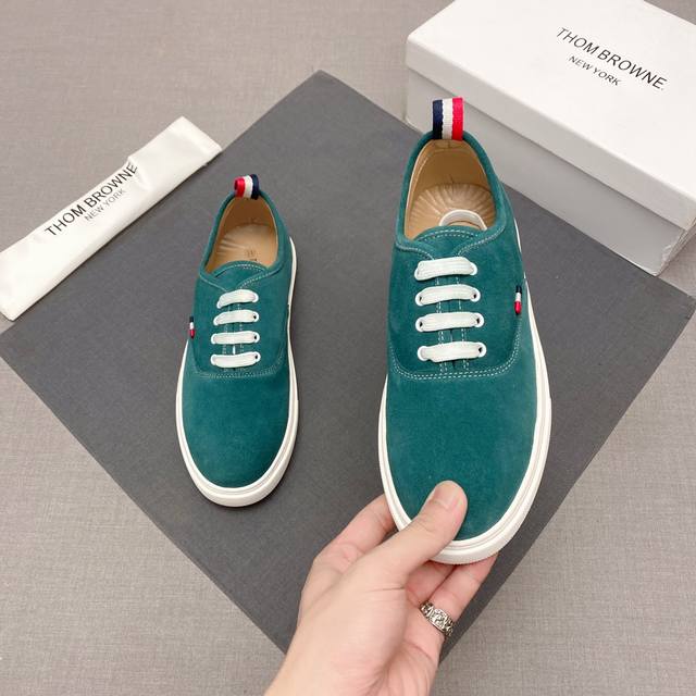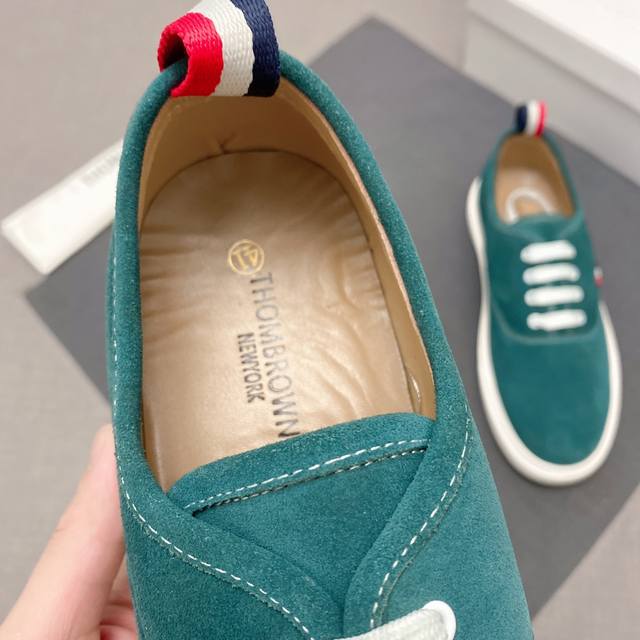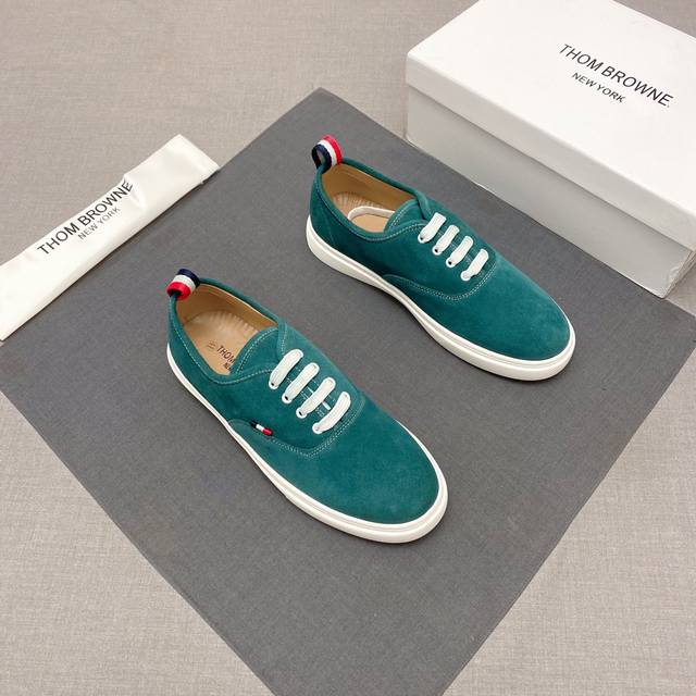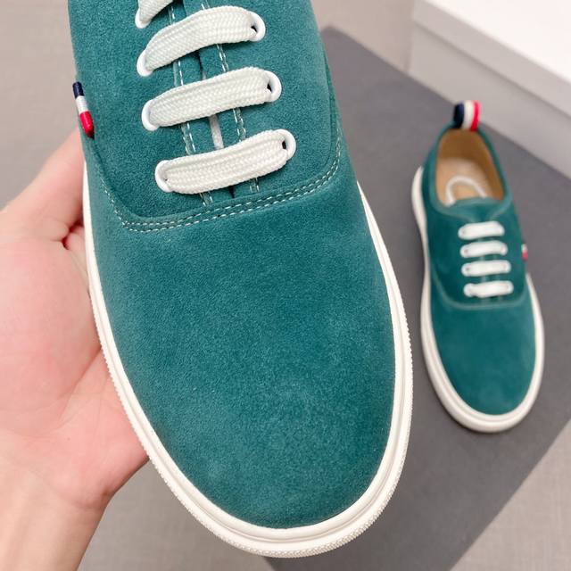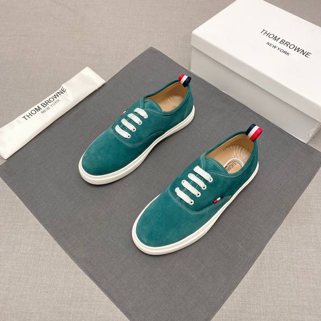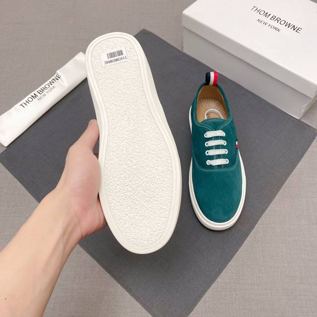 Factory direct price men's sports shoes, original Thom Browne, same as the official website, latest men's casual shoes, Italian imported suede + cowhide lining, wear-resistant rubber outsole, exquisite stitching, minimal embellishment, European and American style, comfortable and high-end, available in sizes 38-45, item number 061