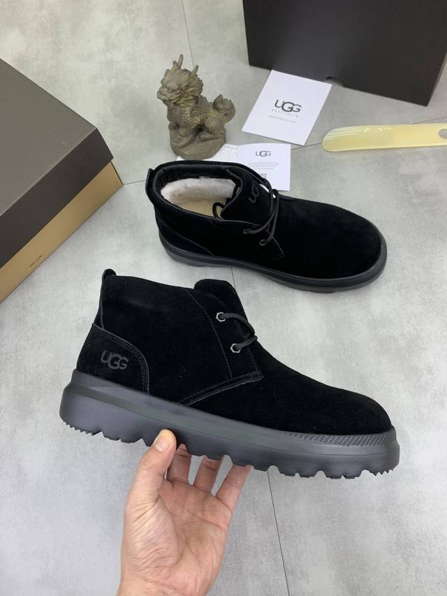 Factory direct price men's sports shoes original top version Ugg 2025 autumn/winter high-top new casual shoes new series Ansley mules fashionable and comfortable shallow mouth flat slip-on casual loafers DDD Classic suede cowhide with 10mm wool lining, soft and comfortable suede collar, Ugg classic hot embossed brand logo on the back, full of texture, lightweight, thin rubber sole, non-slip, wear-resistant and comfortable DDD Colors: black, brown DDD Size: 39-44 DDD