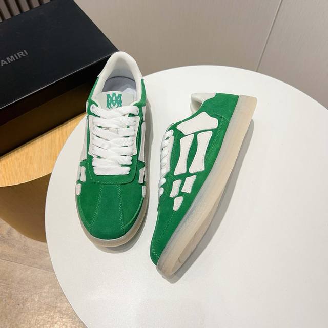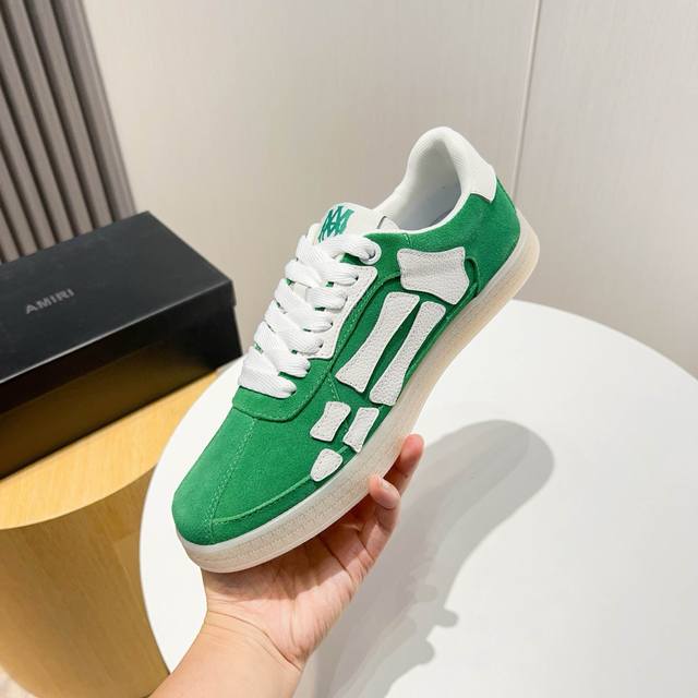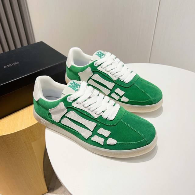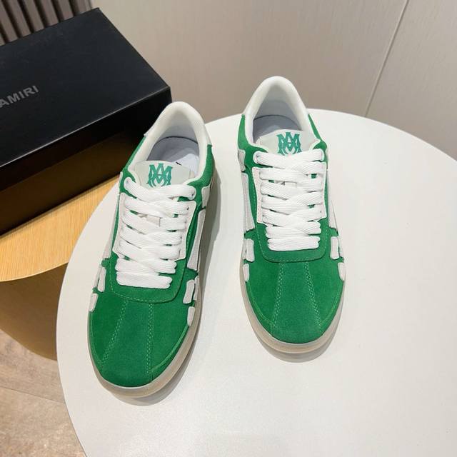 Factory direct price new Amiri trendy shoes, low-top casual sports shoes, celebrity style, made of selected suede cowhide with bone-style stitching, original outsole, comfortable to wear, high-end workmanship and texture. Welcome to purchase. Size: 39-45, 46 (custom sizes available).