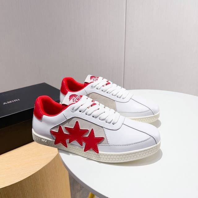 Factory direct price new Amiri trendy shoes, low-top casual sports shoes, celebrity style, made of selected suede cowhide with a five-pointed star design, original outsole, comfortable to wear, high-end workmanship and texture. Welcome to purchase. Size: 39-45, 46 (custom sizes available).
