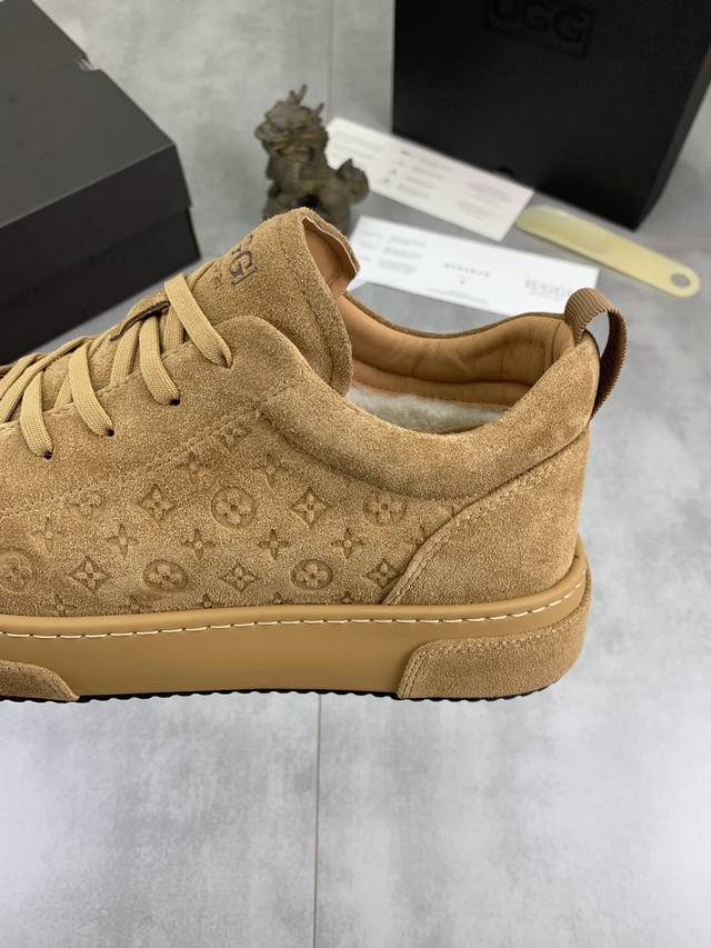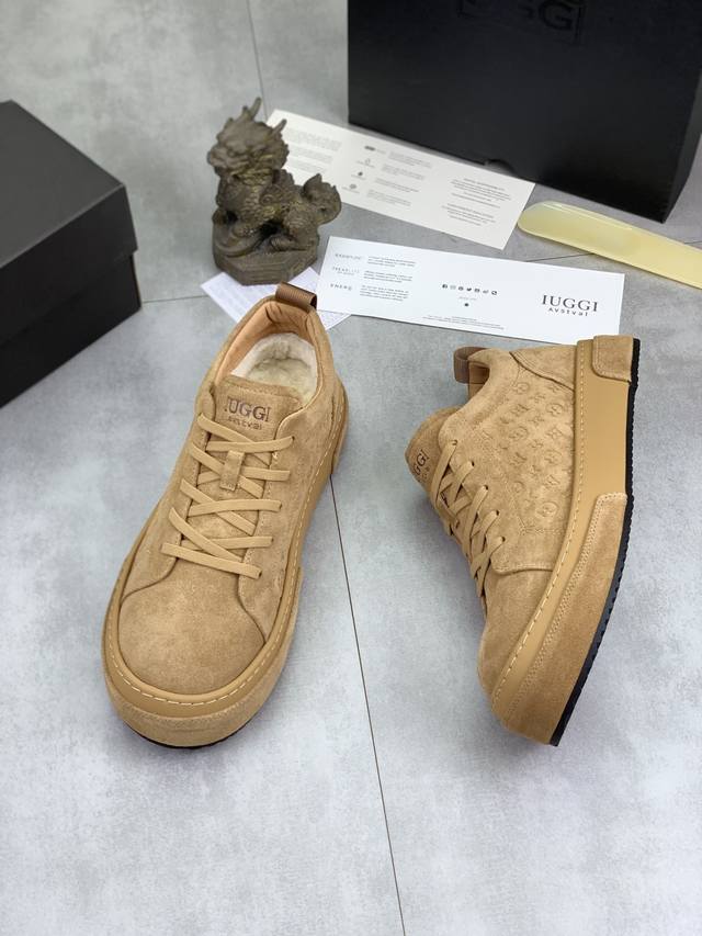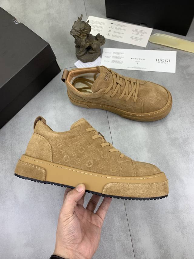 Factory direct price, new arrivals at a real price! Iuggi new retro monogram men's shoes, casual, versatile, high-end, fashionable, light luxury, and unique. Collaboration style, retro monogram elements, very stylish. Top layer suede cowhide lining, wool inner lining. Lightweight and non-slip rubber outsole. Size: 39-44. Three colors. 9681-C22.