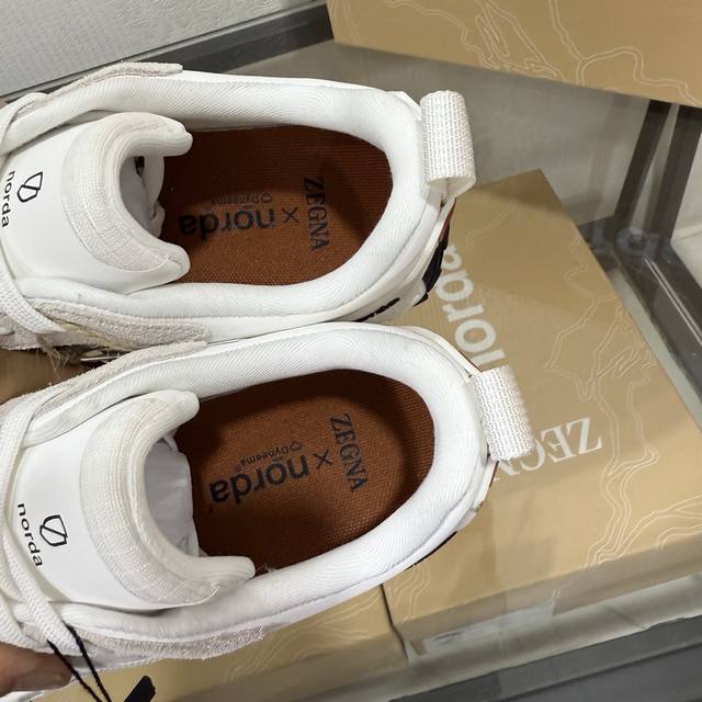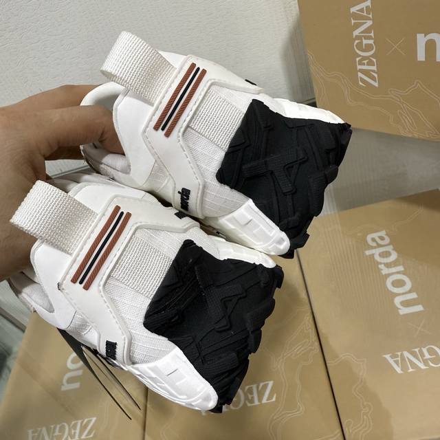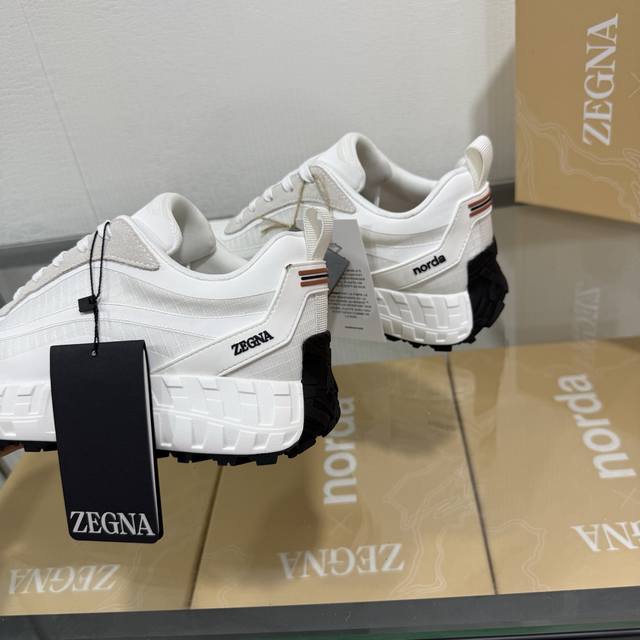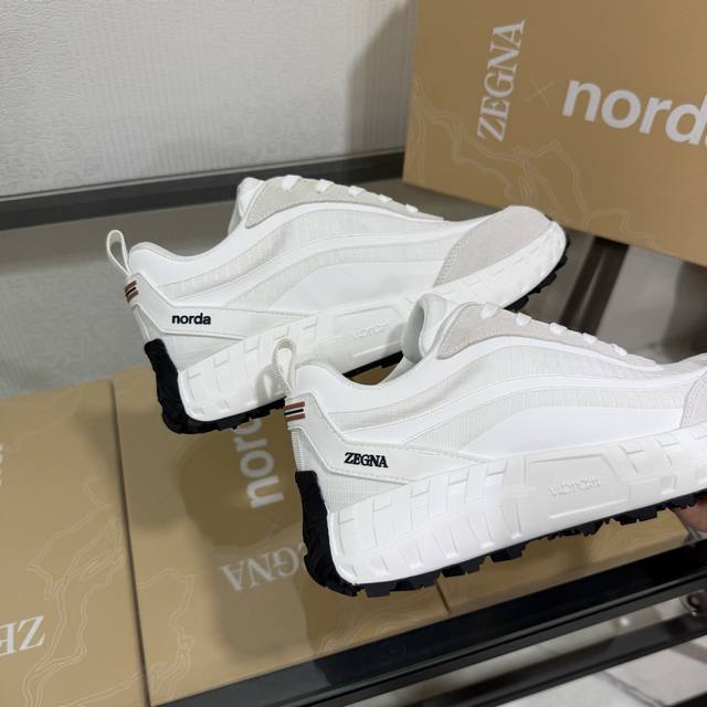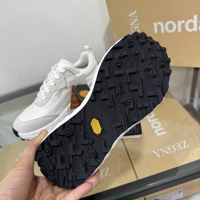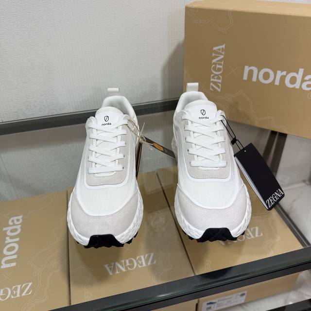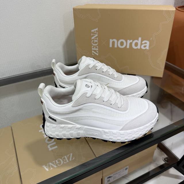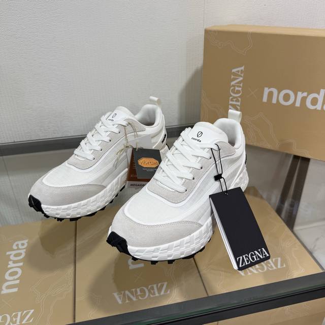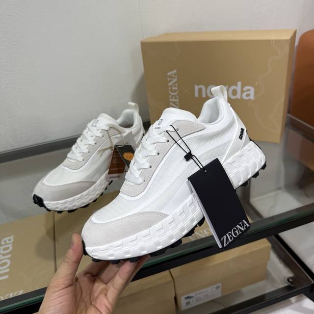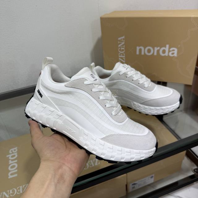 Factory direct price New seasonal Zegna X Norda 003 collaboration sneakers A collaborative effort between Zegna and Norda, this running shoe features a breathable mesh cowhide upper and a lightweight Vibram sole. Foliage details adorn the shoe with both brands' logos, giving it a distinctive style. Sizes 39-45 & 46 available for customization.