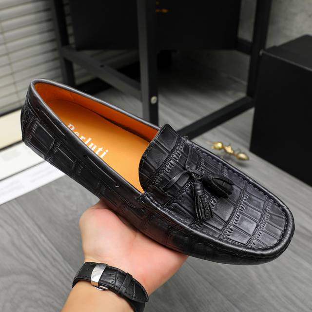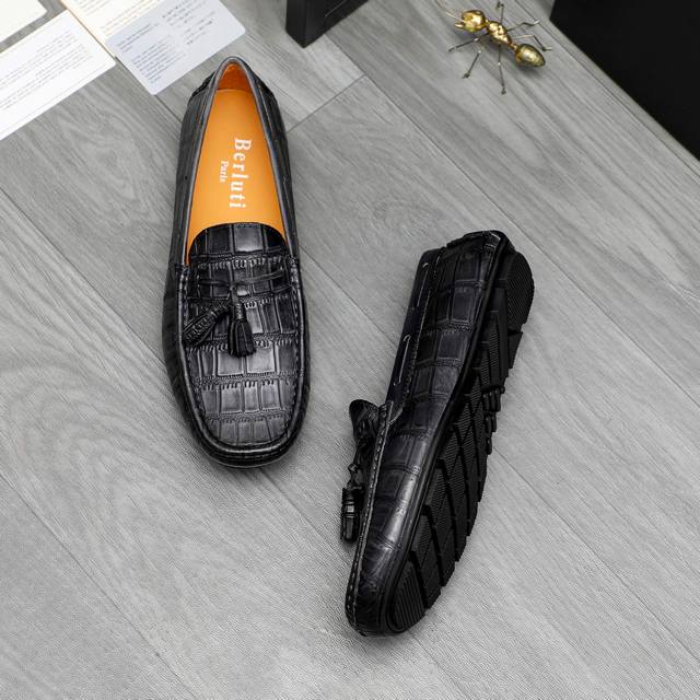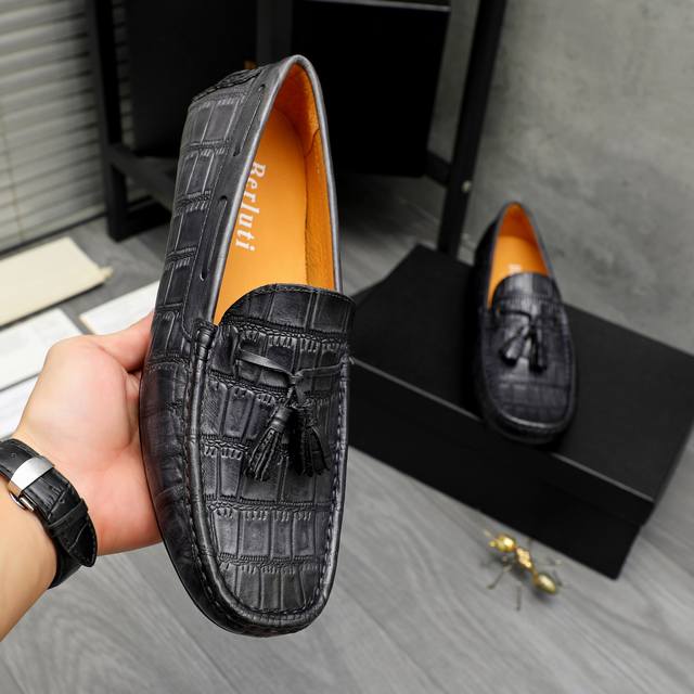 Factory direct price product trademark: Berluti casual slip-on shoes. True to size: 38-45. 45. Custom orders are non-refundable. Product materials: Selected high-quality stone-patterned cowhide upper, pigskin lining, rubber outsole.