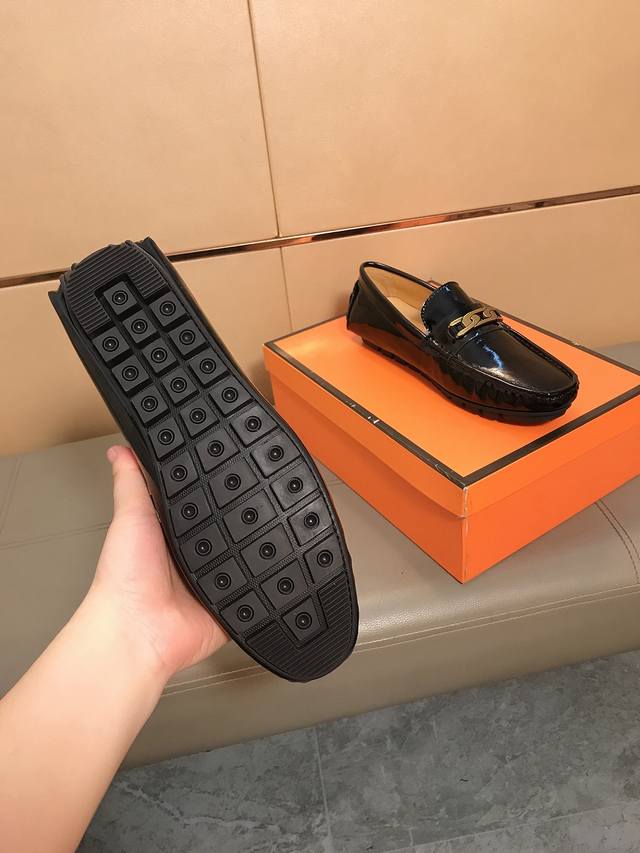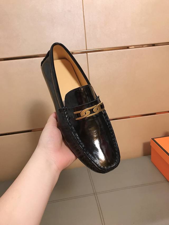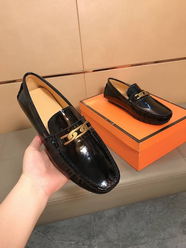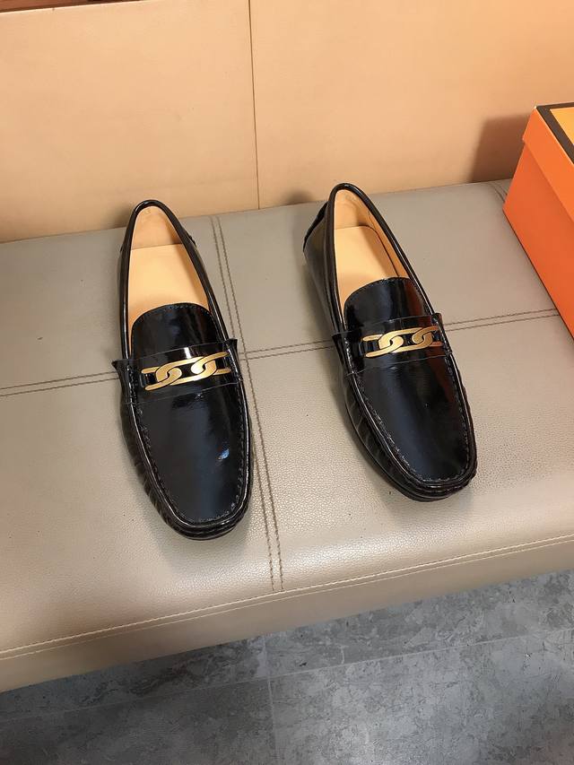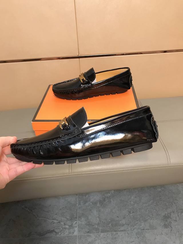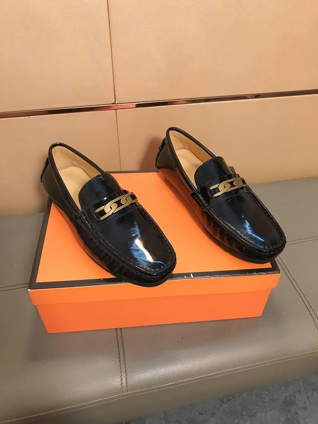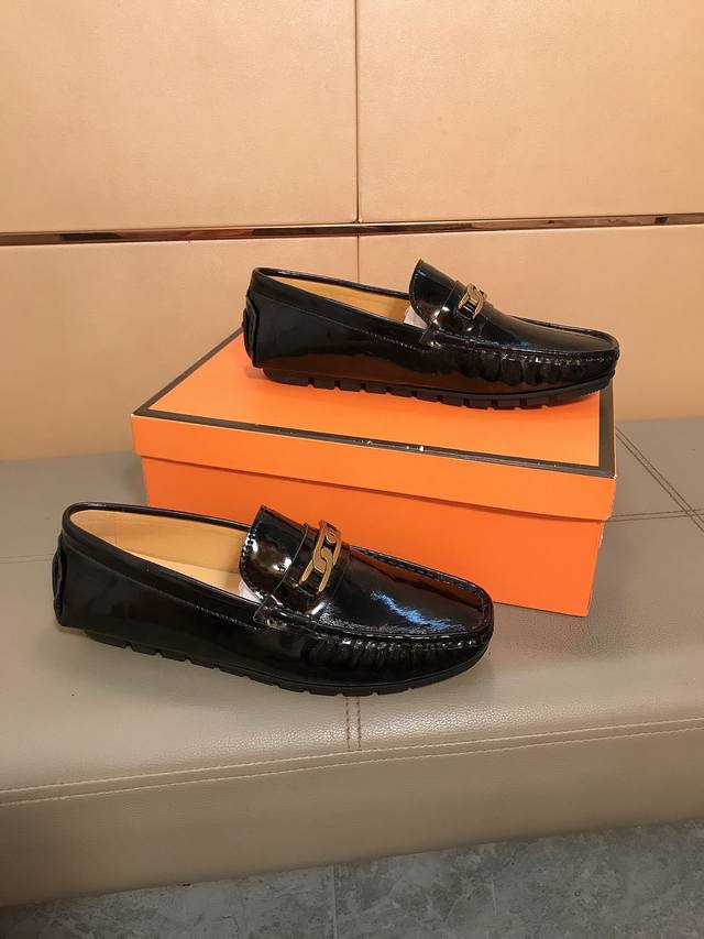 Factory direct price Tod's new men's casual loafers, imported patent leather upper with decorative buckles, sheepskin lining to accentuate every man's status, understated yet luxurious, stylish and stable on the feet, the shoe last remains unchanged regardless of wind or rain, standing the test of time. Sizes: 38-44.