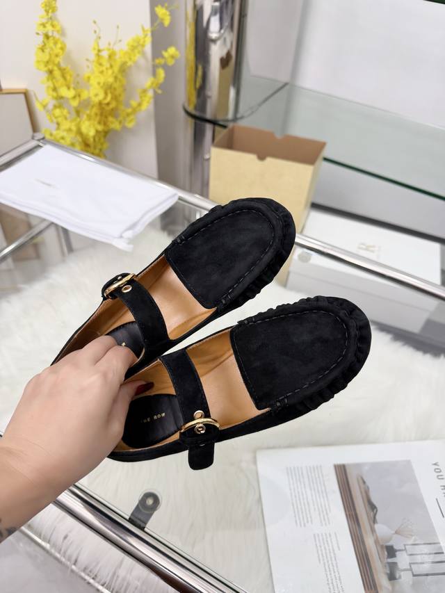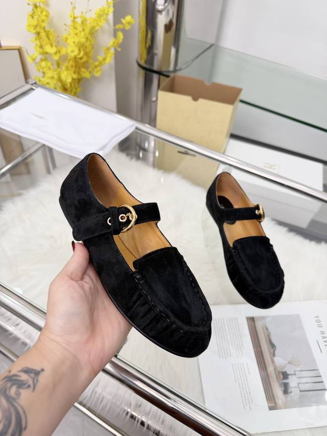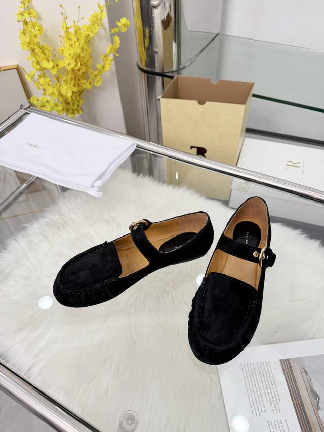 Factory direct price women's clothing, shoes, sportswear, original high quality. Niche trendy brand The Ro*2026 Spring/Summer new simple one-strap round toe flat shoes, Mary Jane shoes, grandma shoes! Simple retro unisex style! Very comfortable flat shoes, minimalist design concept, slim fit, easy to wear, combining good looks and practicality. Upper: Imported sheepskin suede. Insole: Lambskin. Outsole: Italian imported genuine leather. Sizes: 35-40. Size 40 is custom-made and non-refundable. Comes with original packaging.