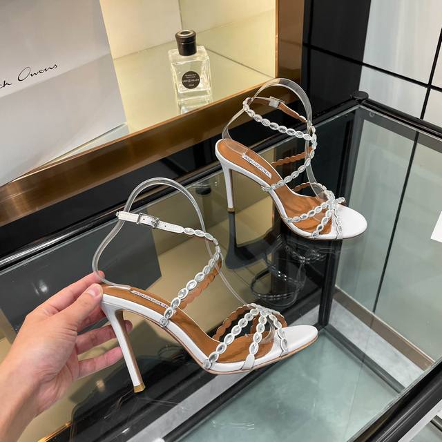Factory direct price women's clothing, shoes, sportswear, original single item, Aquazzura 2025 new style slippers, Ddd classic upgraded version, Ddd quality, Ddd original development, Ddd Swarovski rhinestone round toe high-heeled sandals, like fairy shoes from a fairy tale. The Swarovski rhinestones are dazzling, like stars inlaid on them, each radiating a dreamy light. The round toe design highlights elegance, and the high heel gives a confident style. Wearing them, it's as if flowers bloom under your feet, every step is fragrant, enjoying the ultimate romance and luxury. 2273-27 Ddd _____________________________ Ddd * Full packaging. Ddd * Upper: Original custom fabric Ddd * Lining: Sheepskin Ddd * Sole: Italian genuine leather outsole Ddd * Heel height: 10.5cm 7.5cm heel height is custom-made, please specify in the order notes!! Ddd * Sizes: 35-43 40 41 42 43 Custom-made, no returns or exchanges Ddd