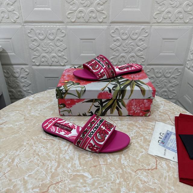 Factory direct price women's clothing, shoes, sportswear, original single item, top-quality version, high quality. New 1:1 mold opening, embroidery + 3D printing slippers. Upper: Embroidery process. Lining: Sheepskin 3D printing. Heel height: Flat 6.5cm. Outsole: Grade A original genuine leather outsole. Sizes: 34
