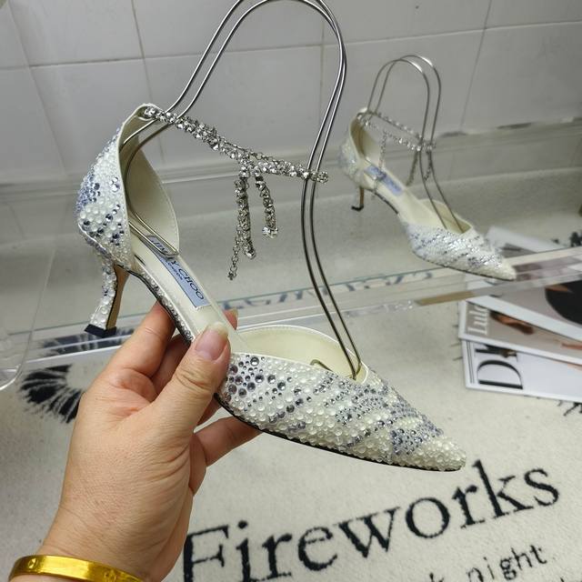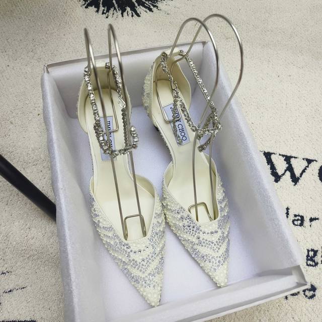 Factory direct price women's shoes and sportswear original single item DDD Jimmy Choo's most beautiful sandals, square-toe hollow rhinestone chain pointed toe sandals series crystal hot-fix rhinestone style, showing off charming personality. Open toe style with modern arched heel, highlighting delicate temperament. DDD Upper: Imported silk high temperature hot-fix rhinestone DDD Lining: Imported crystal sheepskin DDD Outsole: Italian imported genuine leather outsole DDD Sizes: 35