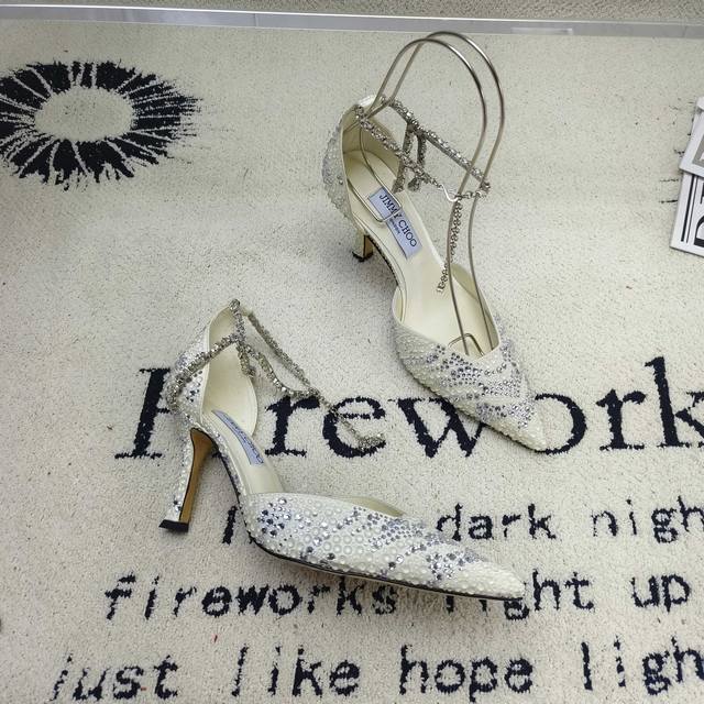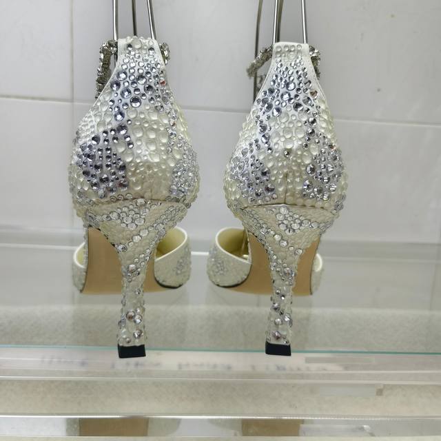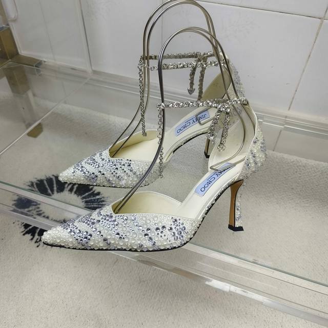 Factory direct price women's shoes and sportswear original single item DDD Jimmy Choo's most beautiful sandals, square-toe hollow rhinestone chain pointed toe sandals series crystal hot-fix rhinestone style, showing off charming personality. Open toe style with modern arched heel, highlighting delicate temperament. DDD Upper: Imported silk high-temperature hot-fix rhinestone DDD Lining: Imported crystal sheepskin DDD Outsole: Italian imported genuine leather outsole DDD Sizes: 35-39 34 40-42 Custom orders are non-refundable DDD Heel height: 6.5 8.5 10Cm DDD