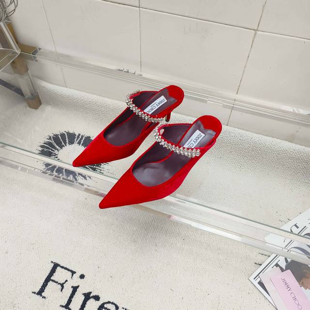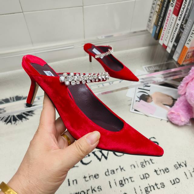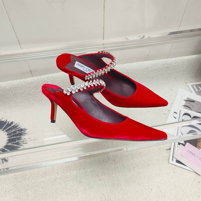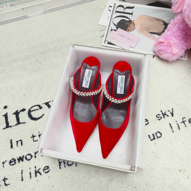 Factory direct price women's shoes sports original single DDD Jimmy Choo new arrival plaid half mules with rhinestone chain high heels. This pair of Jimmy Choo high heeled half mules is stunningly beautiful!! It perfectly elongates the leg line, instantly giving you long legs. The pointed toe design is also exceptional, not only flattering the foot shape but also adding a touch of sophistication. The rhinestone chain in the middle of the shoe is the finishing touch, dazzling and sparkling, swaying gently with every step, exuding sexiness and elegance with every movement. Who wouldn't be mesmerized? DDD Upper: Imported plaid imported velvet DDD Lining: Imported sheepskin DDD Outsole: Italian genuine leather outsole DDD Heel height: Flat 6.5 10 cm 8.5 cm, custom-made, no returns or exchanges DDD Sizes: 35