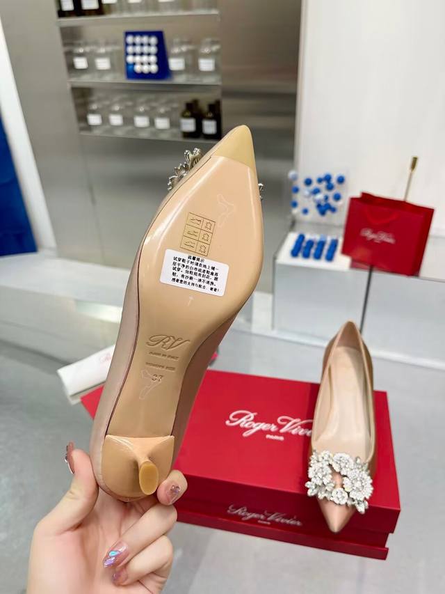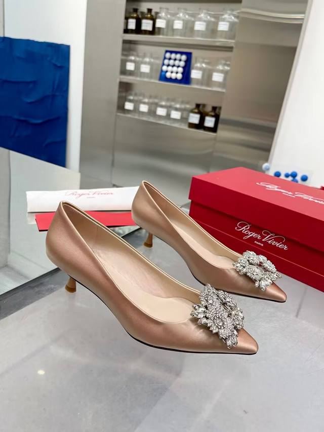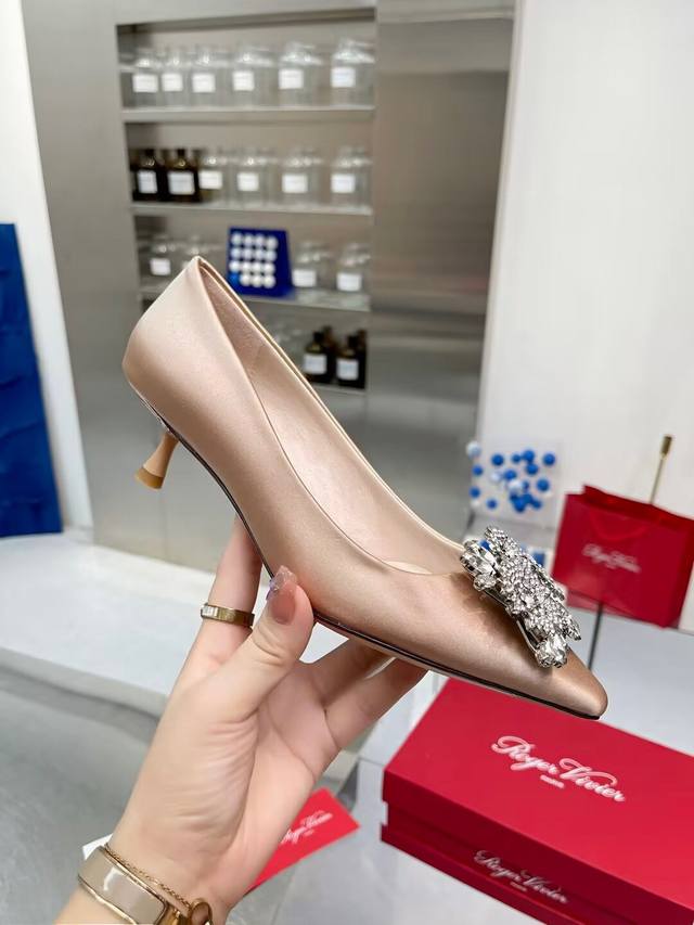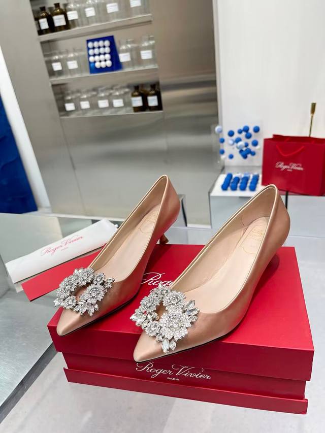 Factory direct price women's shoes, sports shoes, original Roger Vivier new arrivals for all seasons, Rv. Bouquetstrass Czech rhinestone single shoes . Material: Imported silk fabric. Lining: Kunlun light-colored sheepskin lining. Heel height: 4.5cm, sizes 34-39. Custom sizes 40 and 41 available. Luxury buckle: Top-grade sparkling Czech rhinestones. Made with Italian genuine leather sole.