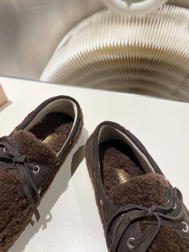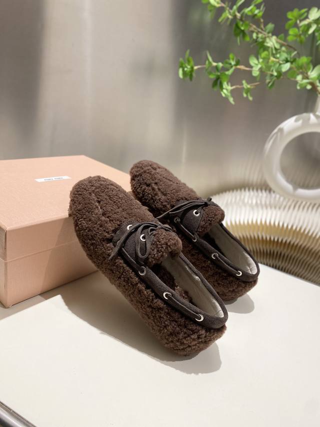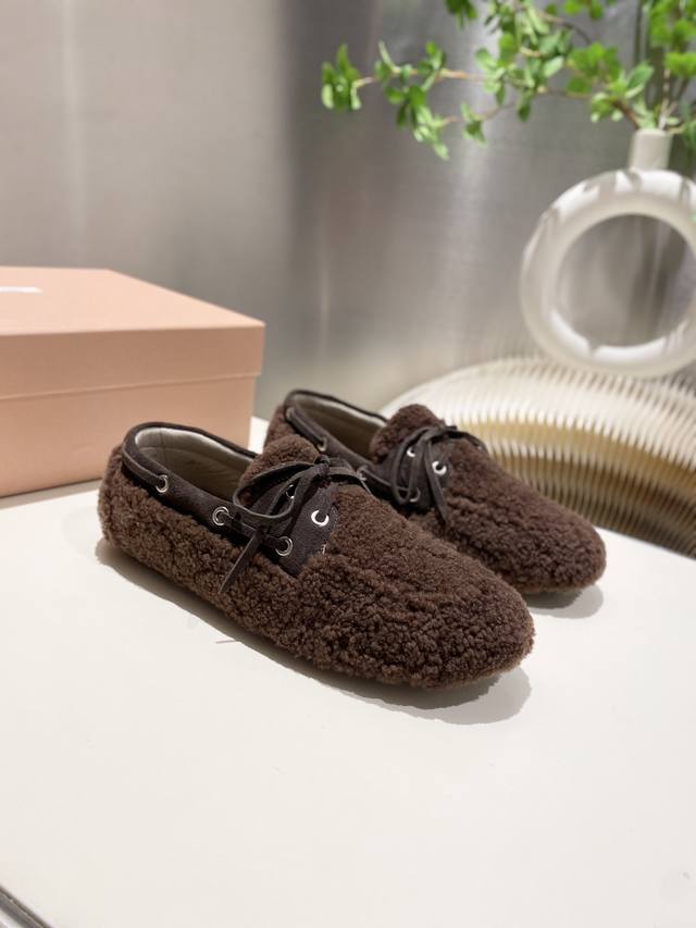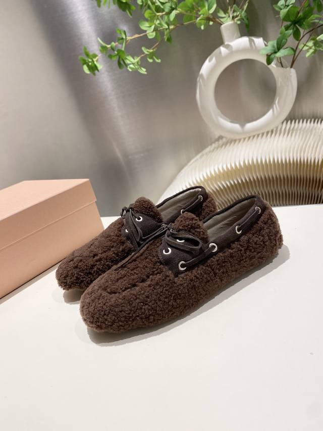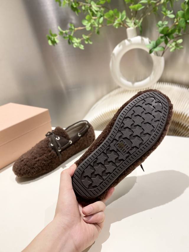 Factory direct stock Miu Miu 2025 flat loafers with fringe, new runway style. Retro loafers, retro, fashionable, simple, and sophisticated, easy to match, very comfortable to wear, a must-have item of the year! Imported wool upper, double-sided fleece lining, original outsole, sizes 34-41. Custom sizes 34, 40, and 41 available.