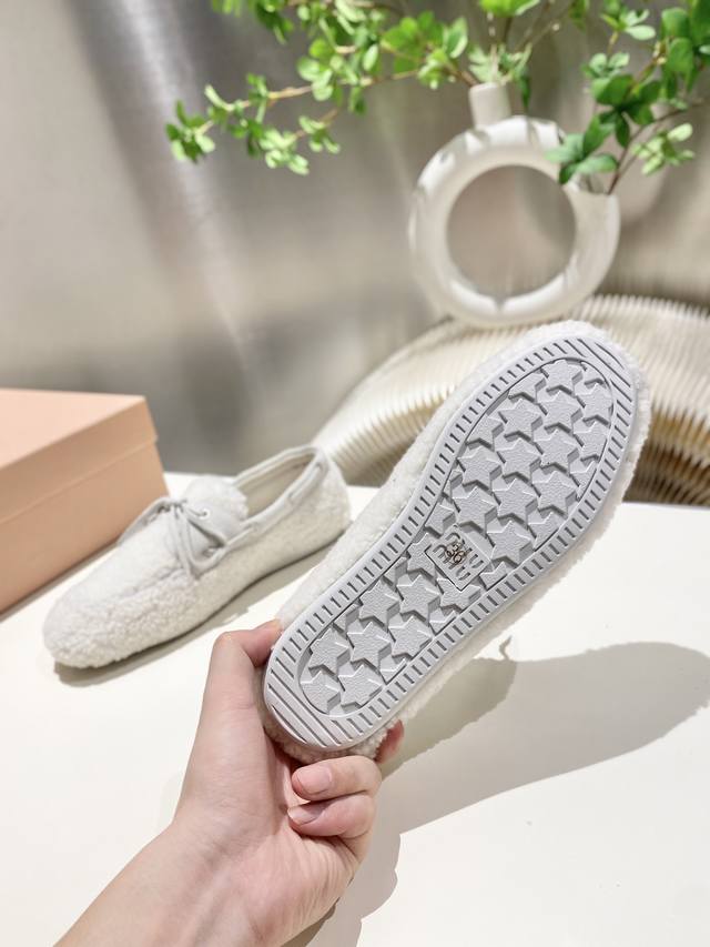 Factory direct stock Miu Miu 2025 flat loafers with fringe, new runway style. Retro loafers, retro, fashionable, simple, and sophisticated, easy to match, very comfortable to wear, a must-have item of the year! Imported wool upper, double-sided fleece lining, original outsole, sizes 34-41. Custom sizes 34, 40, and 41 available.