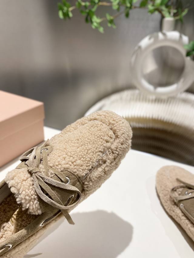 Factory direct stock Miu Miu 2025 flat loafers with fringe, new runway style. Retro loafers, retro, fashionable, simple, and sophisticated, easy to match, very comfortable to wear, a must-have item of the year! Imported wool upper, double-sided fleece lining, original outsole, sizes 34-41. Custom sizes 34, 40, and 41 available.