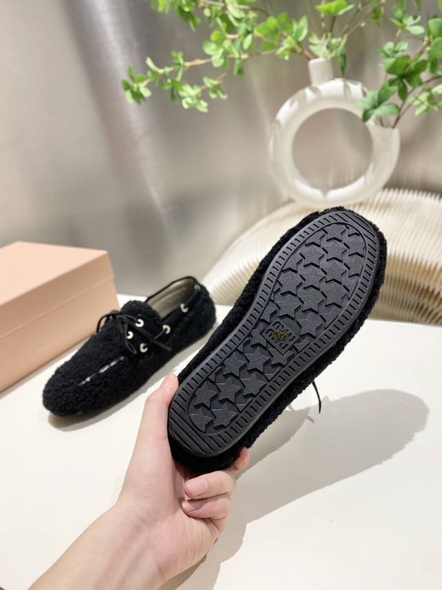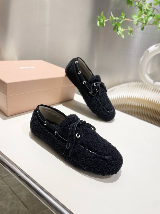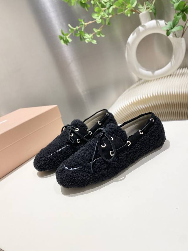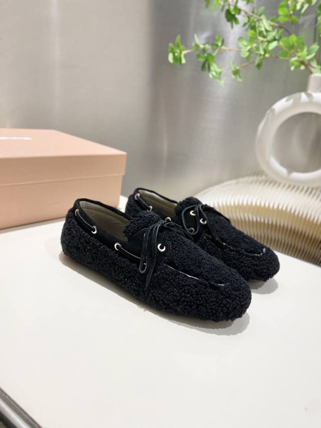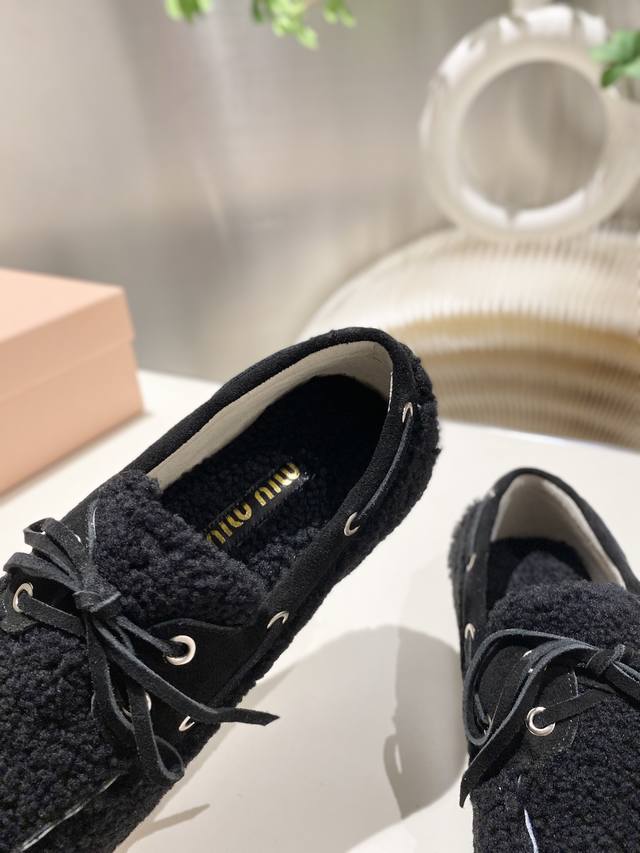 Factory direct stock Miu Miu 2025 flat loafers with fuzzy soles, tassel runway new style. Retro loafers, retro, fashionable, simple, and high-end, easy to match, very comfortable to wear, a must-have item of the year! Original cow suede upper, double-sided fleece lining, original outsole. Sizes 34-41. Custom sizes available (34, 40, 41).