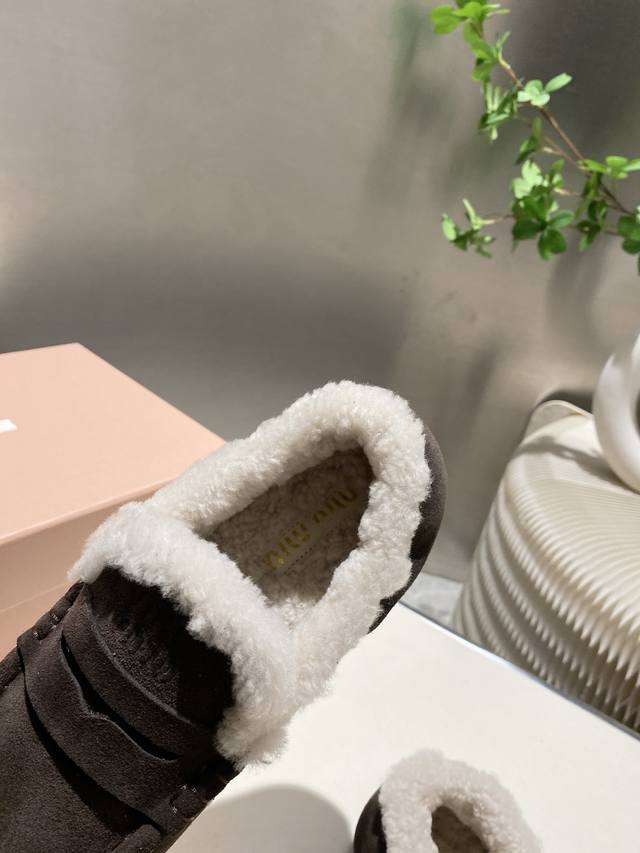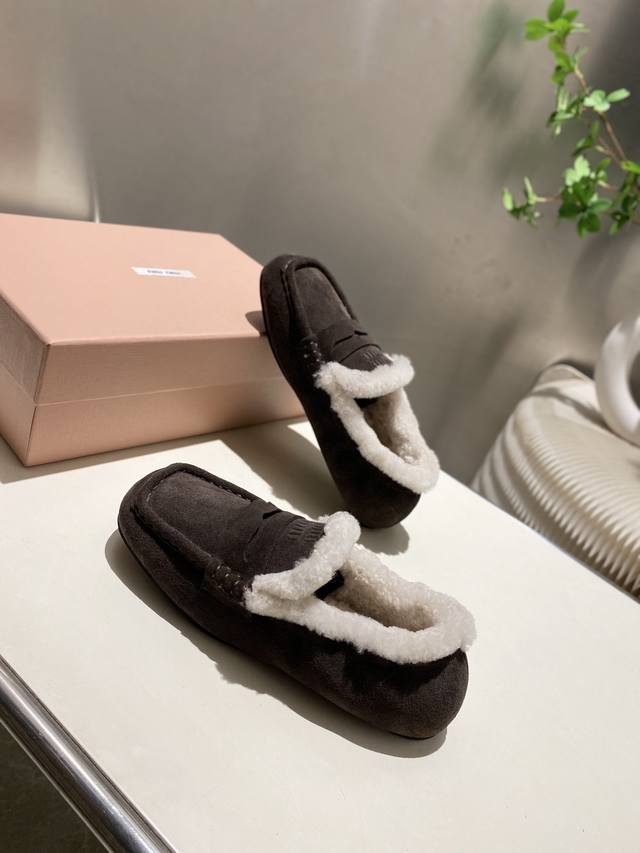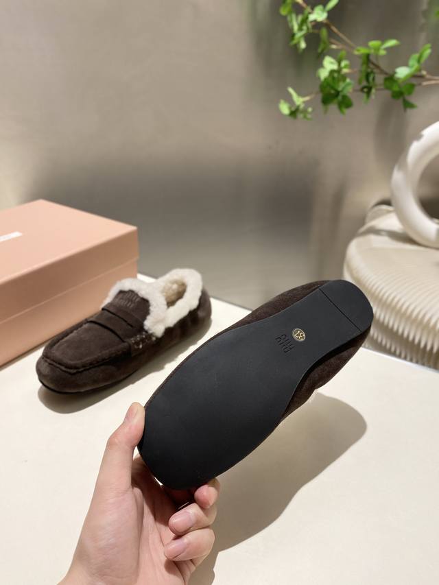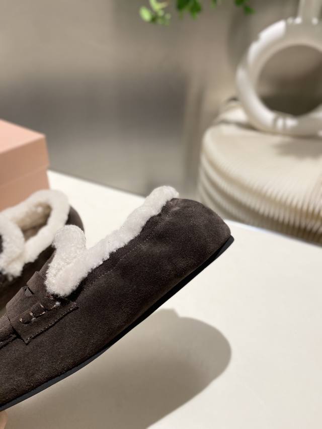 Factory direct, two versions available: leather-lined and fur-lined, flat heel, 4.5cm. Miu Miu 2025 Early Spring runway new style slip-on Mary Jane ballet flats. Official Spring/Summer runway new style, fashionable and versatile, super versatile whether worn barefoot or with socks! 1:1 replica of the original. Upper: Custom imported cowhide. Lining: Sheepskin. Sole: Boutique outsole. Sizes: 34-41. 34.4041 is a custom order and cannot be returned or exchanged.