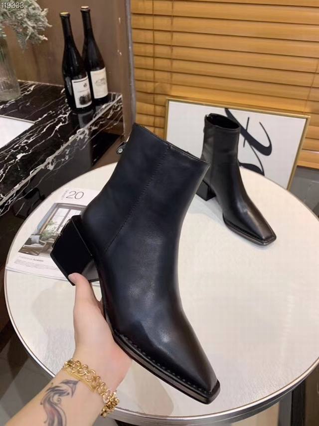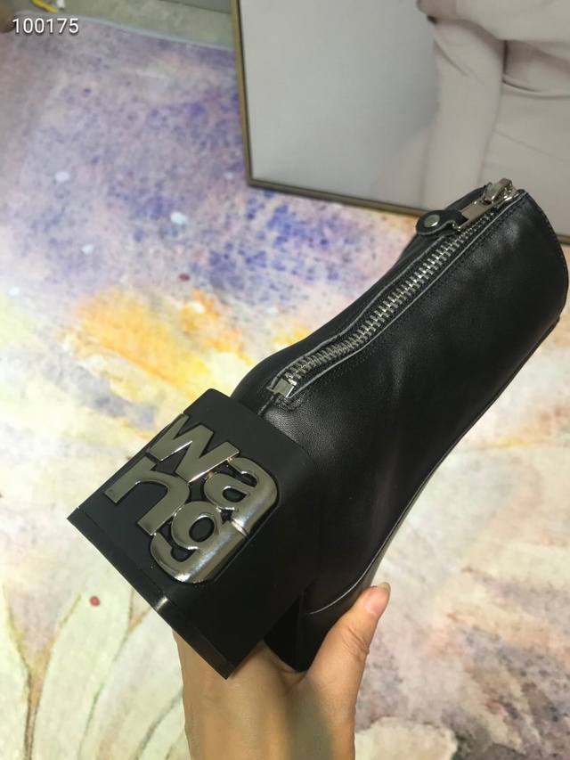 Factory direct women's shoes and athletic boots, original Alexander Wang new trendy boots, square toe, sexy duckbill toe, paired with electroplated lettering and unique heel for a queenly look. Top quality, this year's hottest style, already selling out at boutiques and resellers! Made with imported calfskin lining, non-slip rubber outsole. Size: 35-40.